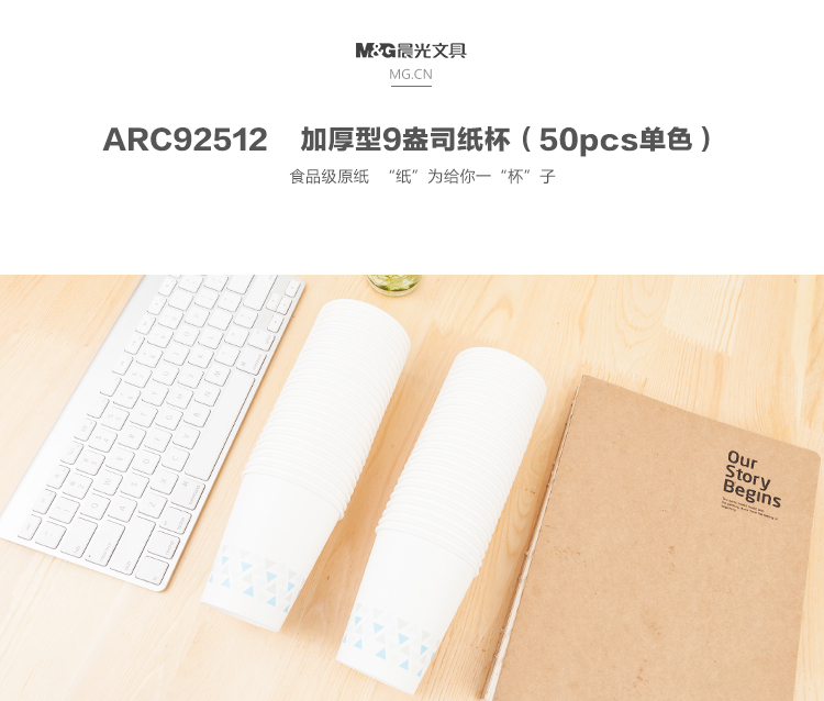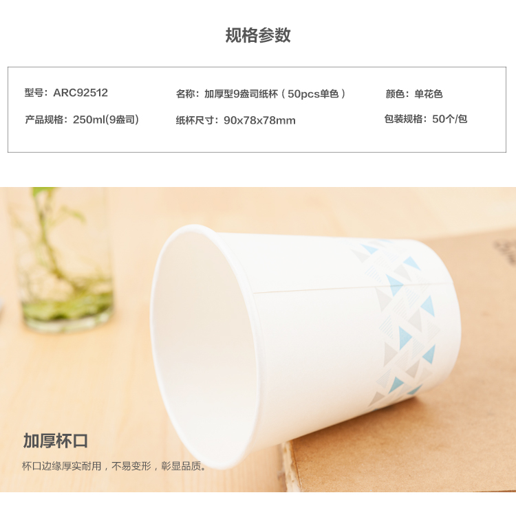 晨光(M&G)文具250ml加厚型纸杯 9盎司一次性水杯 商务办公茶水杯子 50只装ARC92512 白色