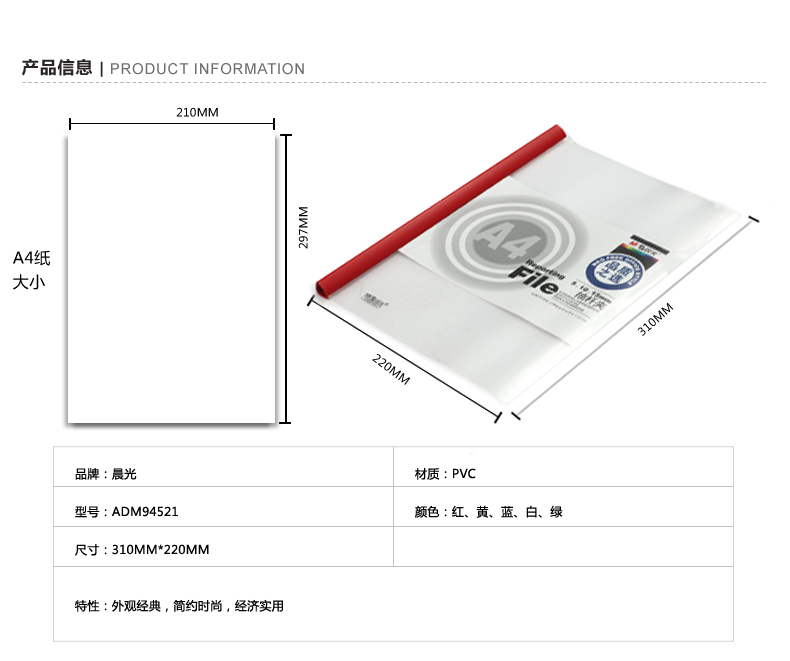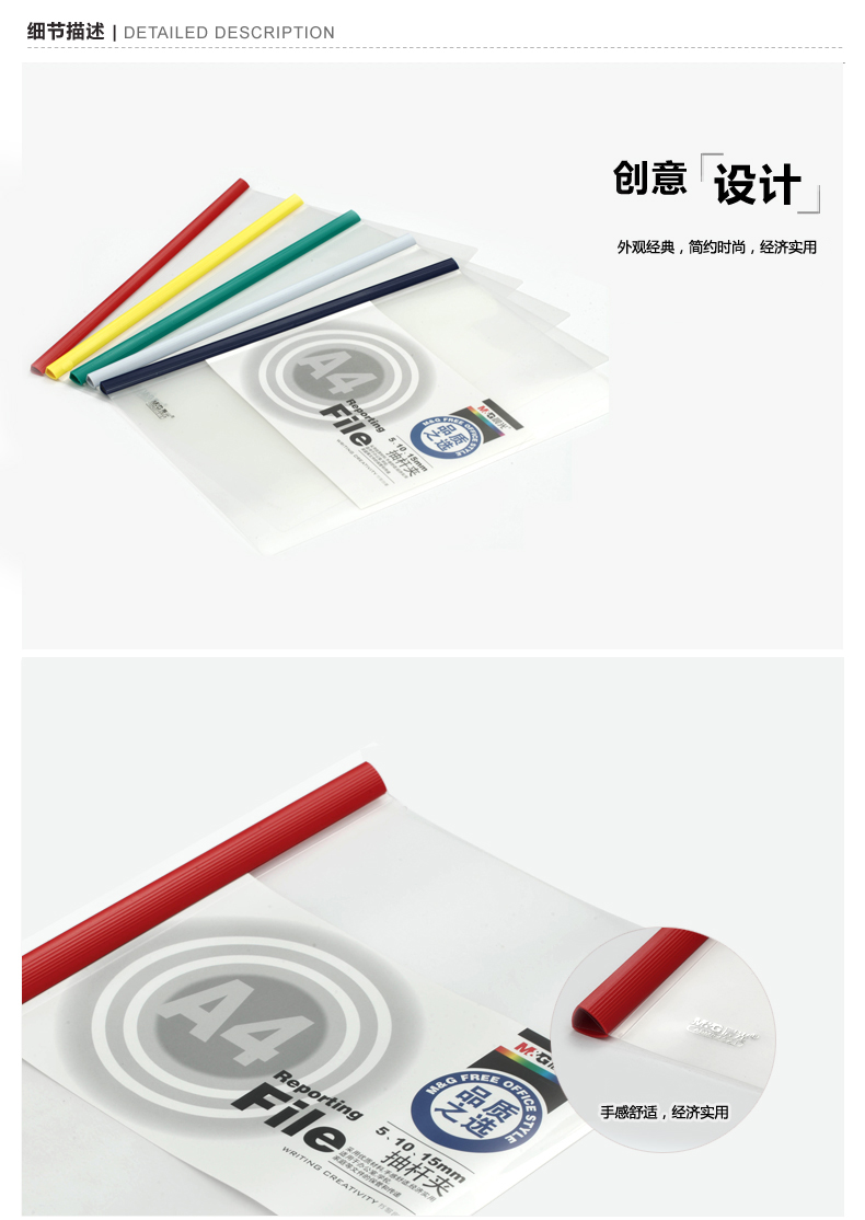 晨光(M&G)ADM94521 A4彩色抽杆夹多层文件夹塑料报告简历学生试卷夹15MM插页夹资料夹10个装 1包 红色