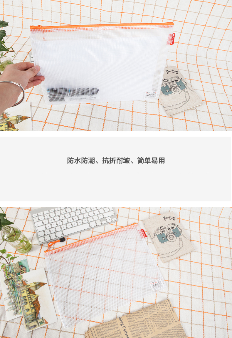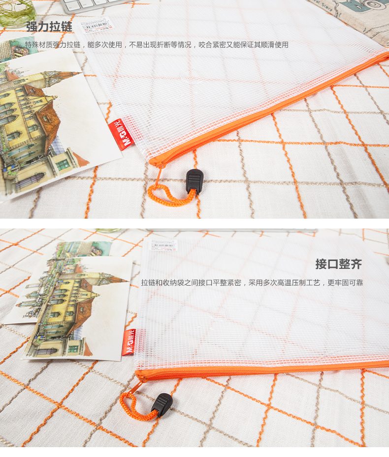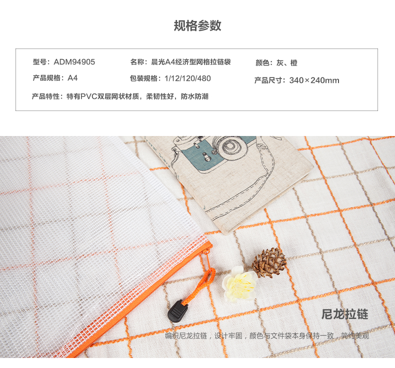晨光(M&G)文具 A4经济型网格拉链袋 文件袋 PP材质 颜色随机ADM94905 5个装 随机