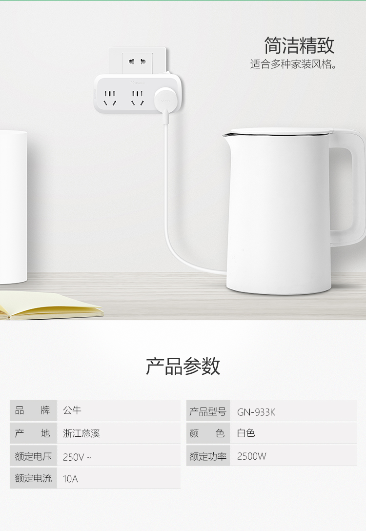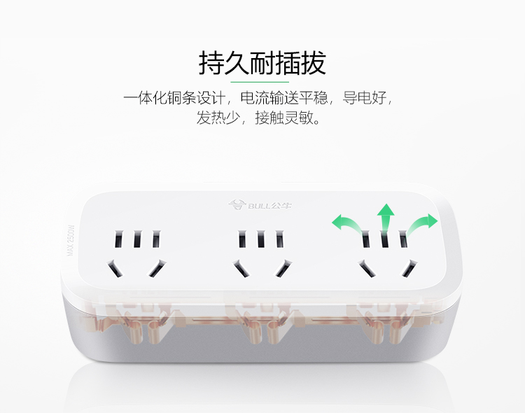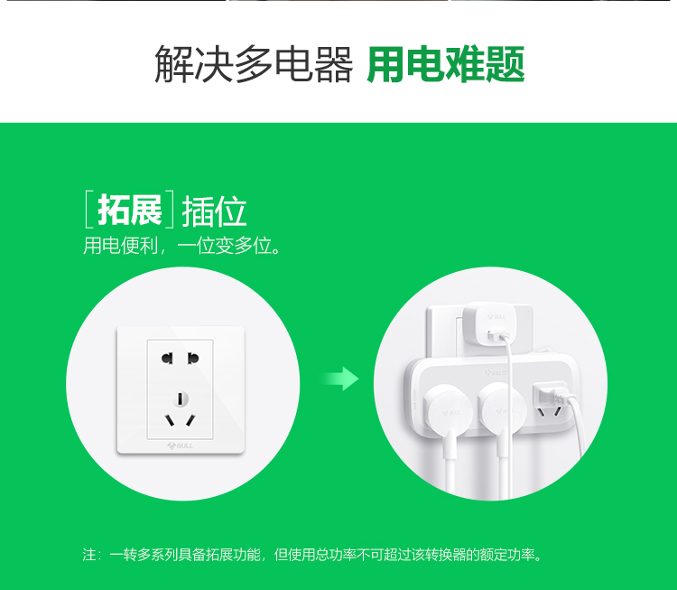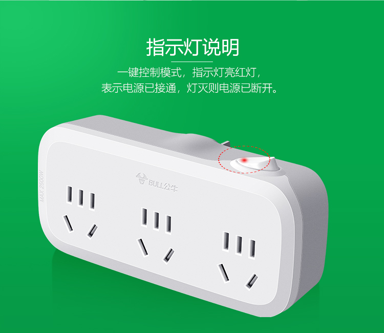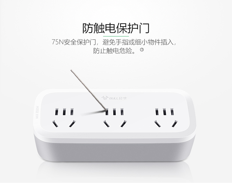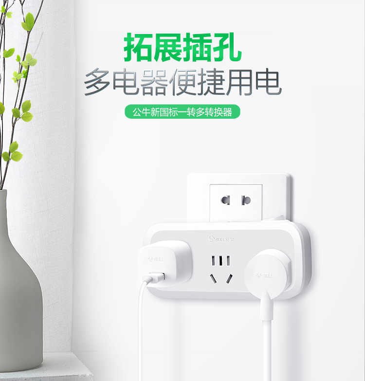 公牛(BULL) 转换插头/一转三插座 GN-933K 2500W 白色(单位:个)