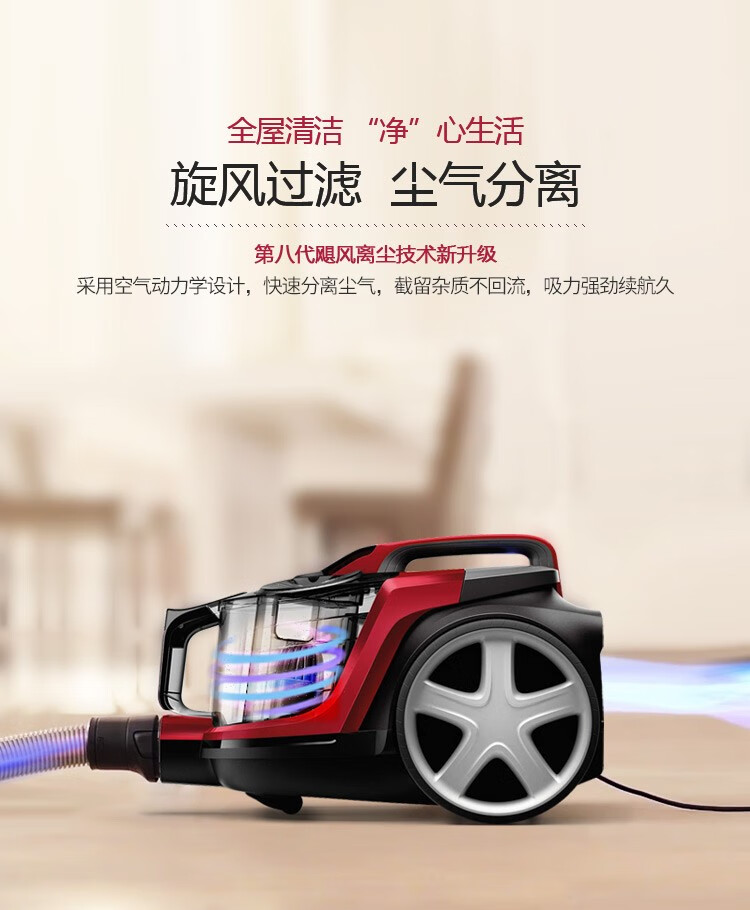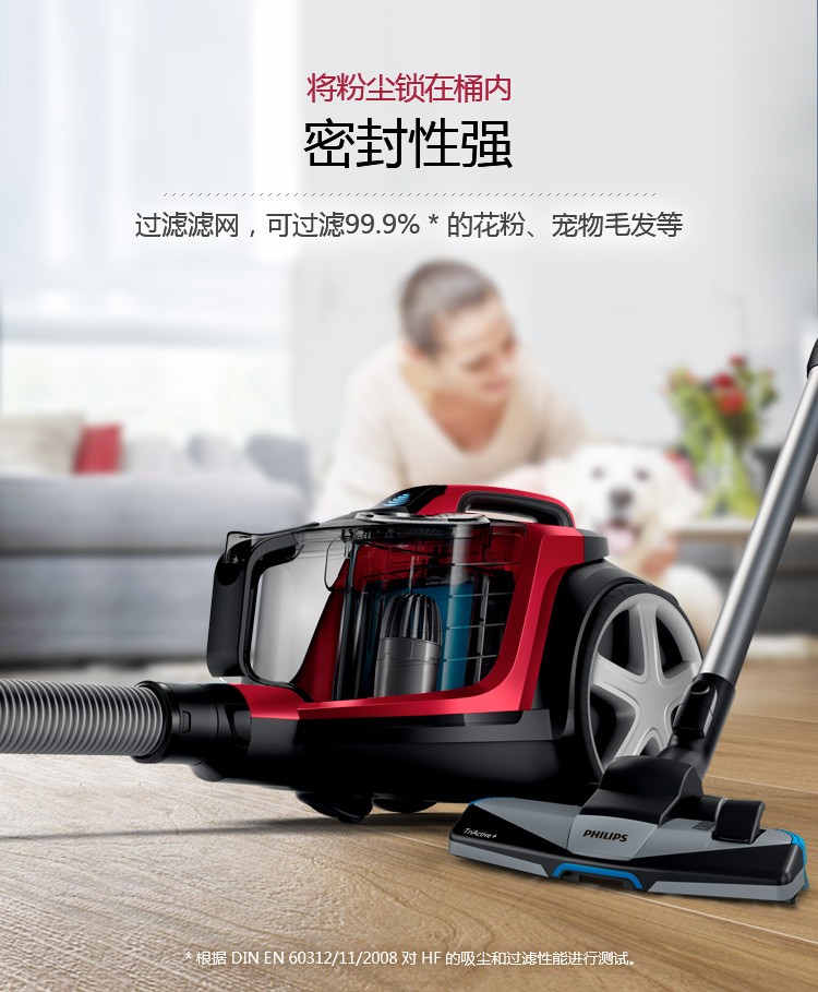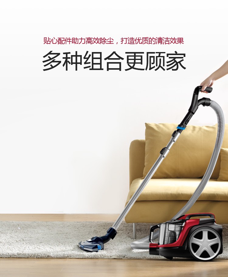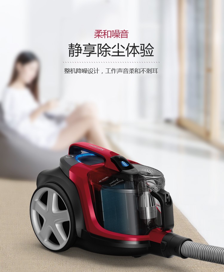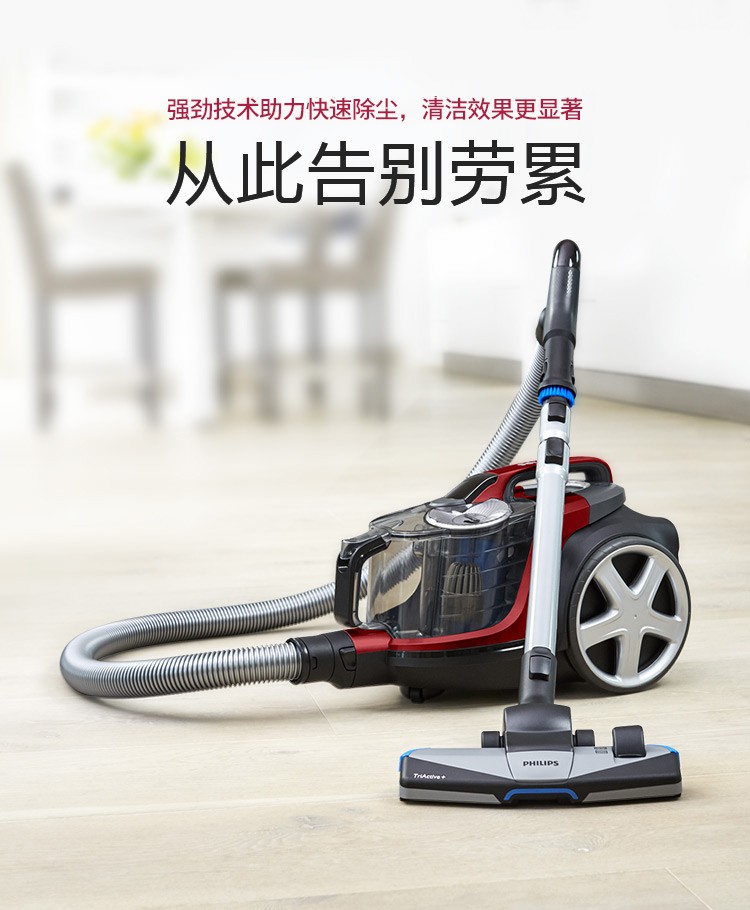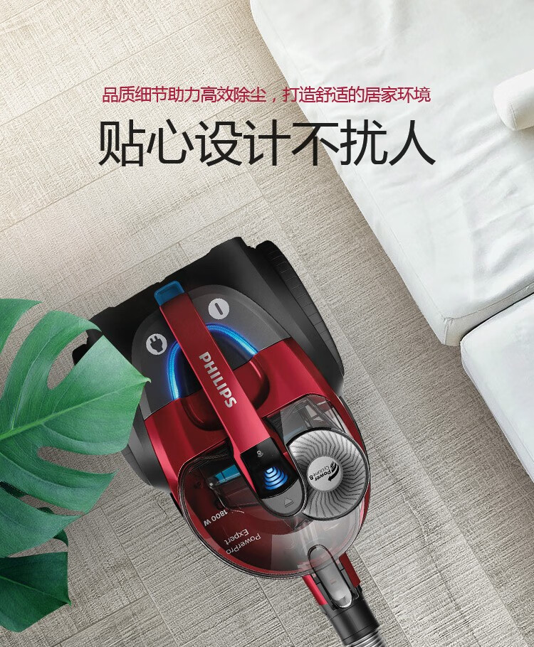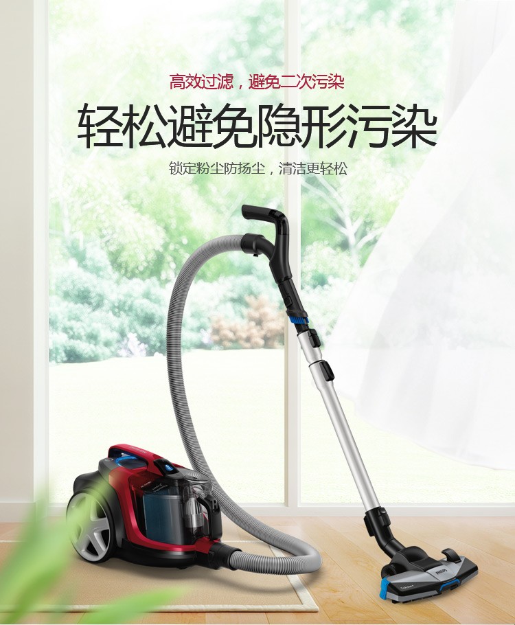 飞利浦(PHILIPS)卧式吸尘器家用清洁机强劲大吸力吸灰吸尘吸螨虫除螨FC9735/81(台) 红色