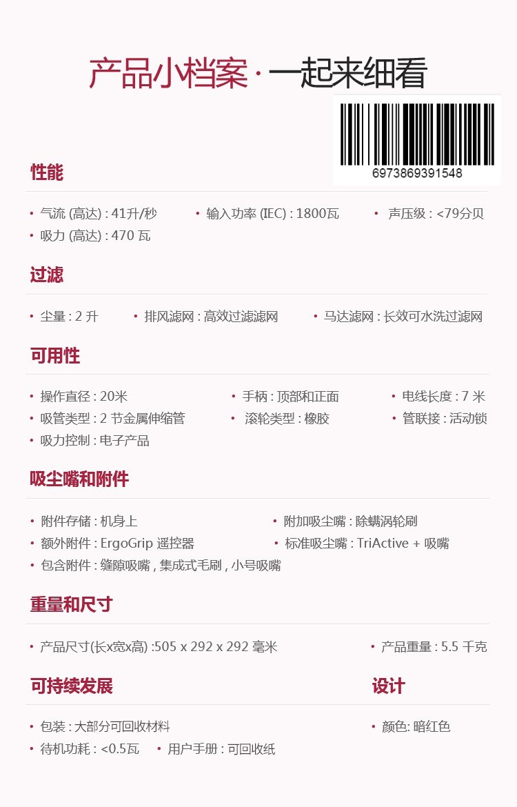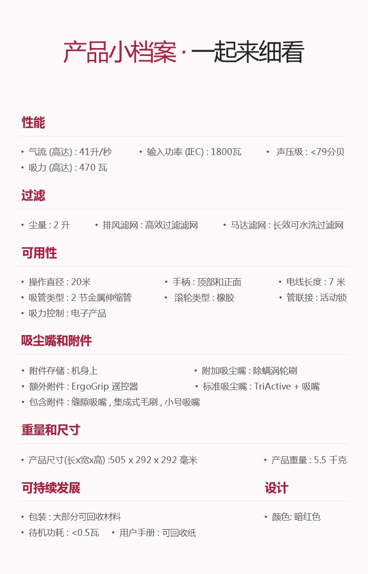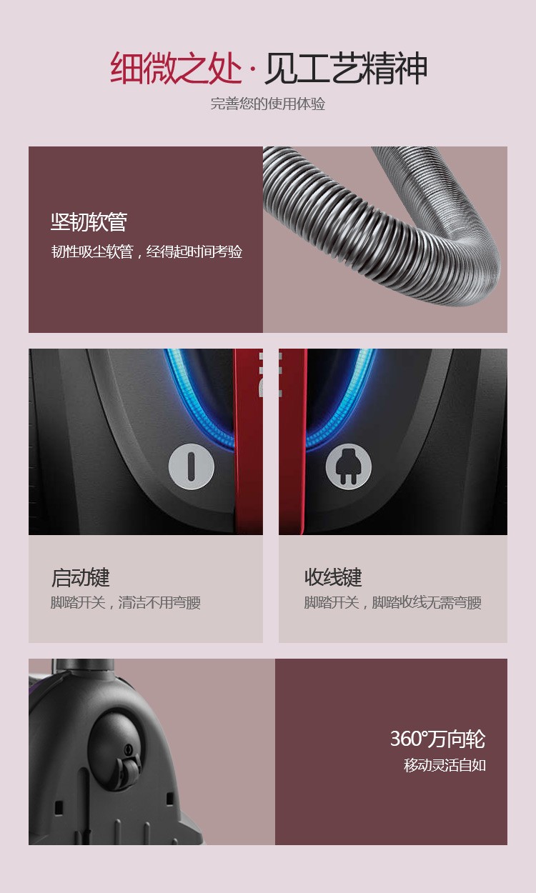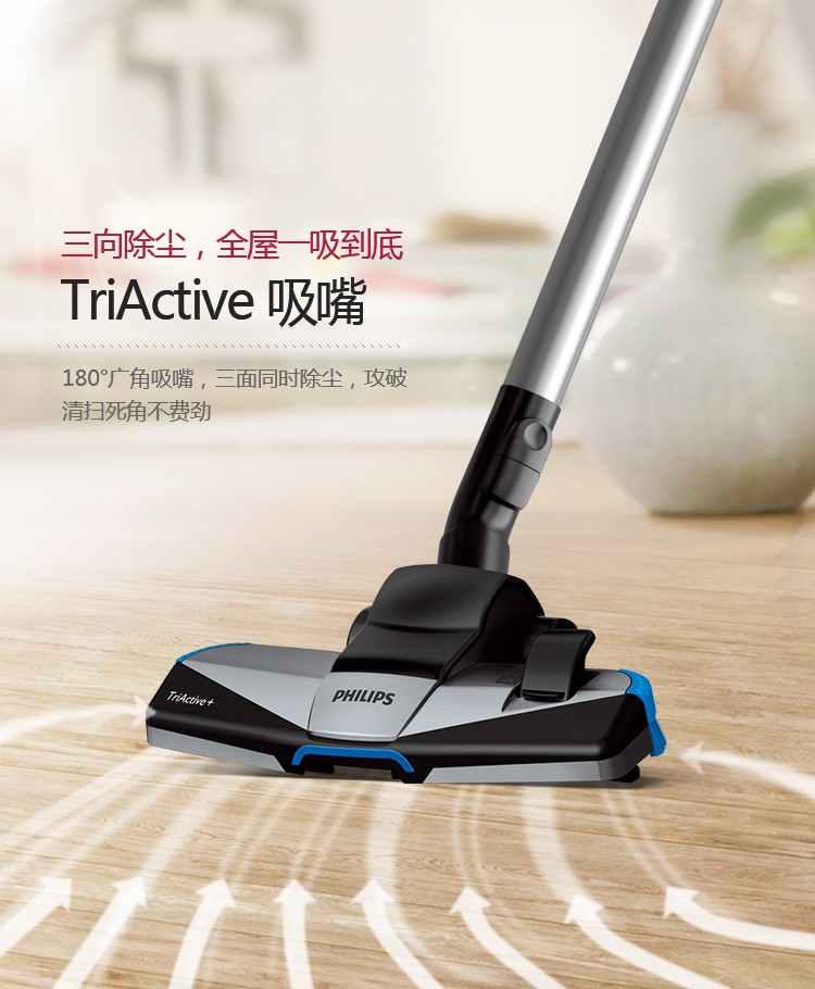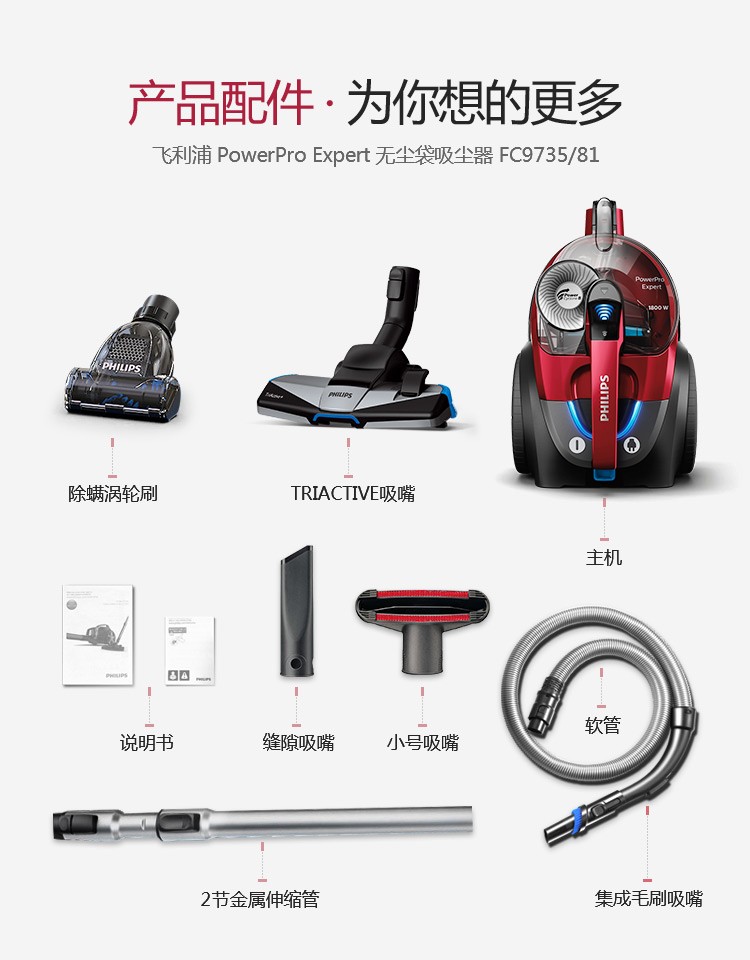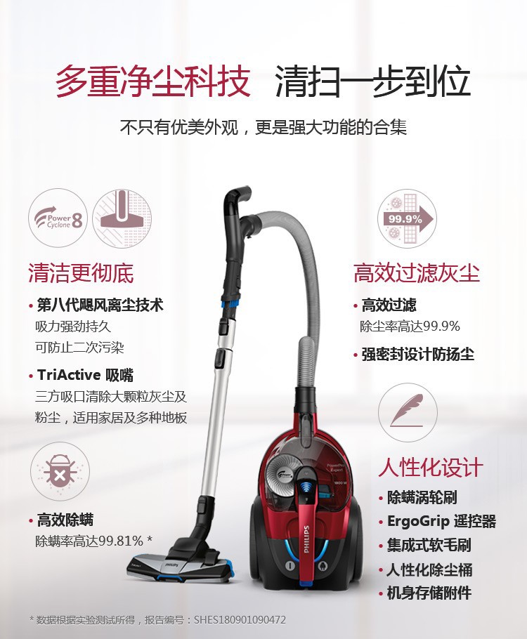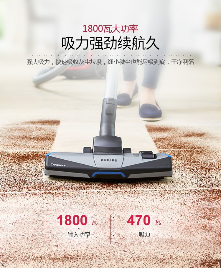 飞利浦(PHILIPS)卧式吸尘器家用清洁机强劲大吸力吸灰吸尘吸螨虫除螨FC9735/81(台) 红色