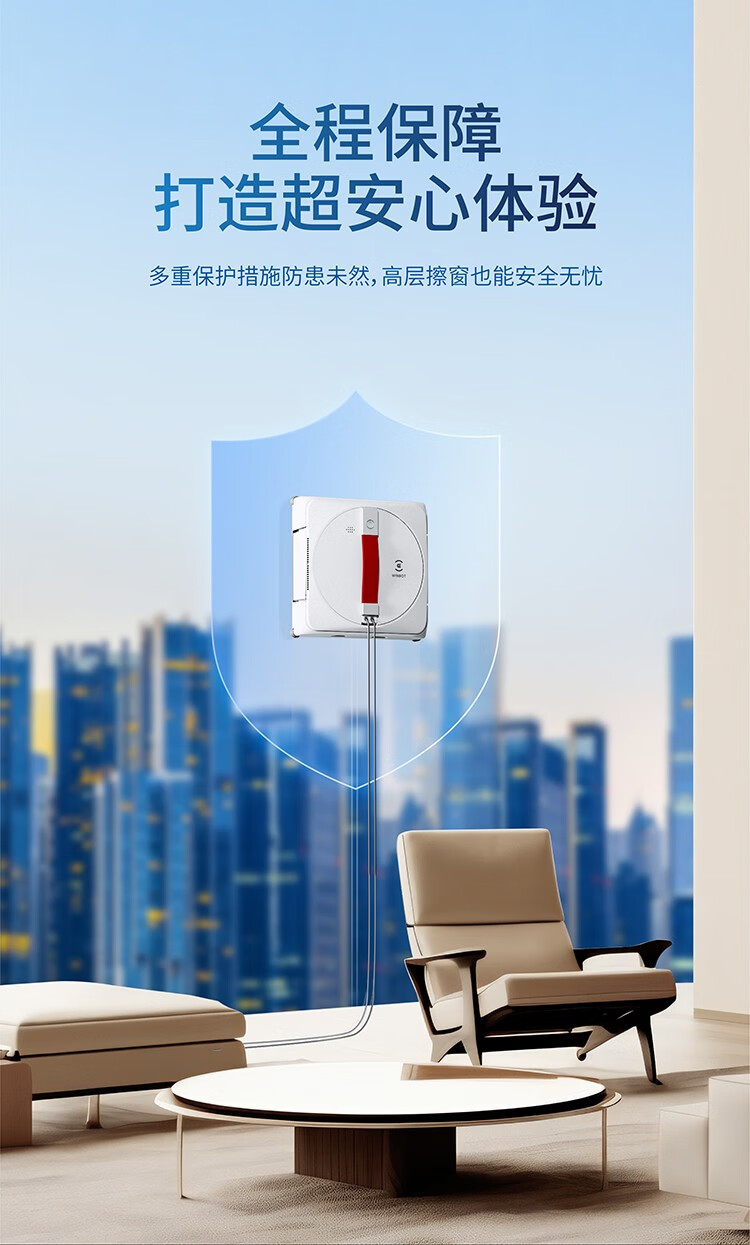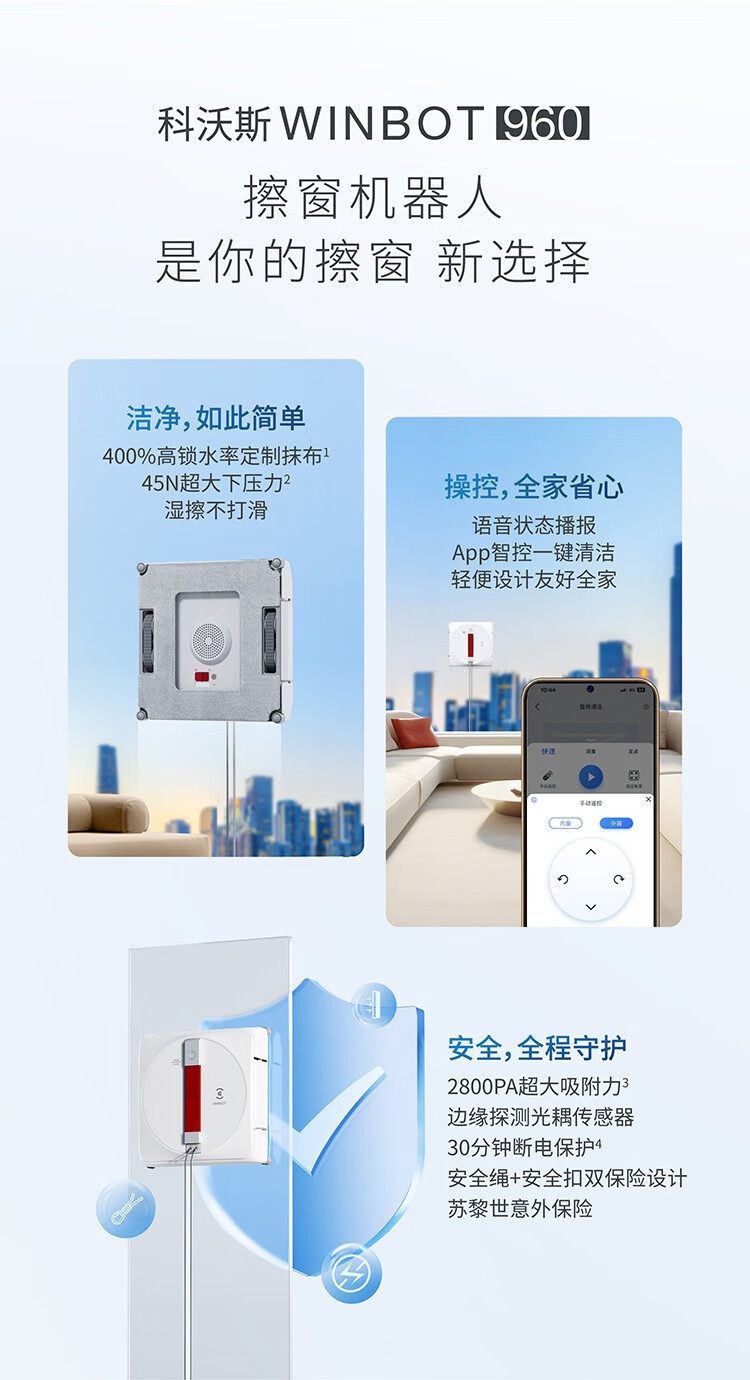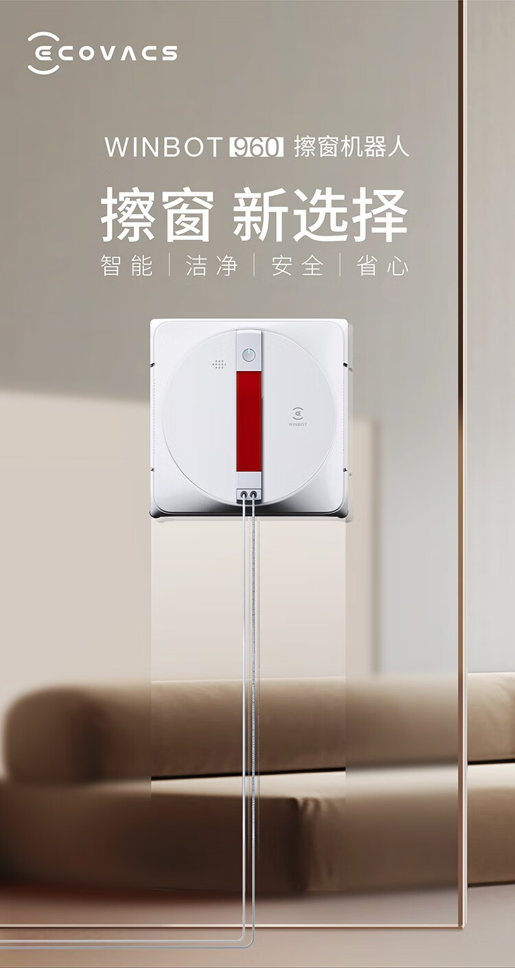 科沃斯(ECOVACS)窗宝WINBOT960擦窗机器人擦玻璃神器全自动擦窗机器人家用擦窗机台 白色