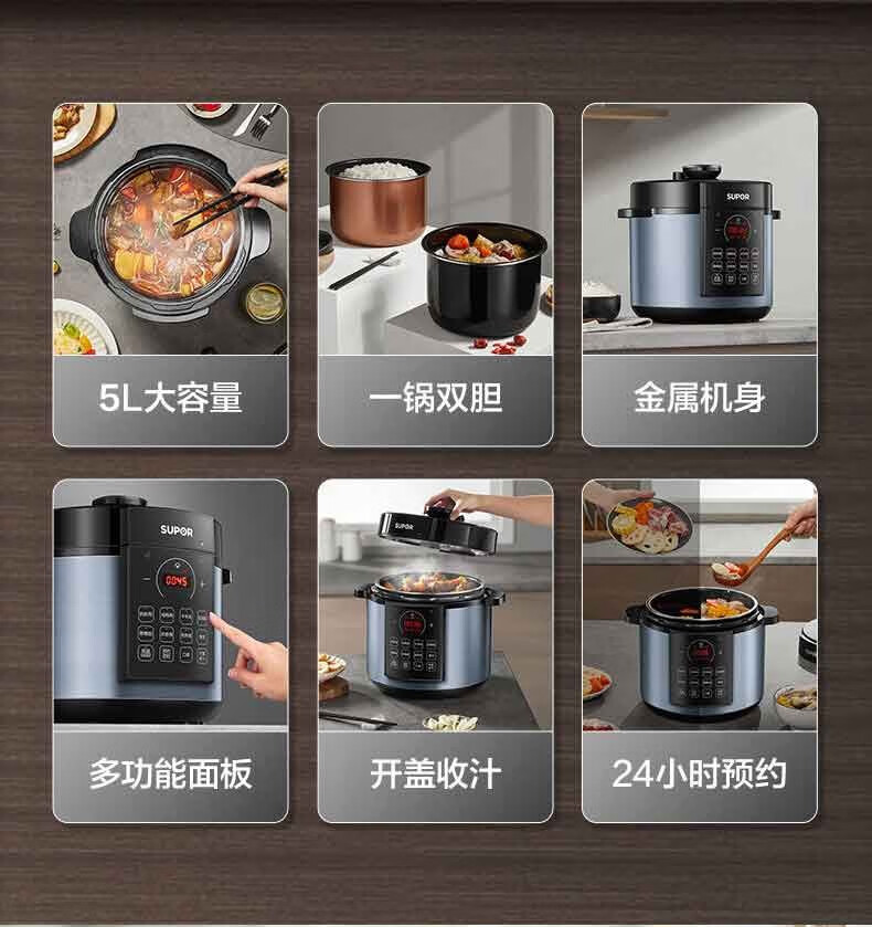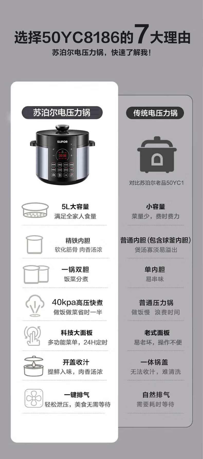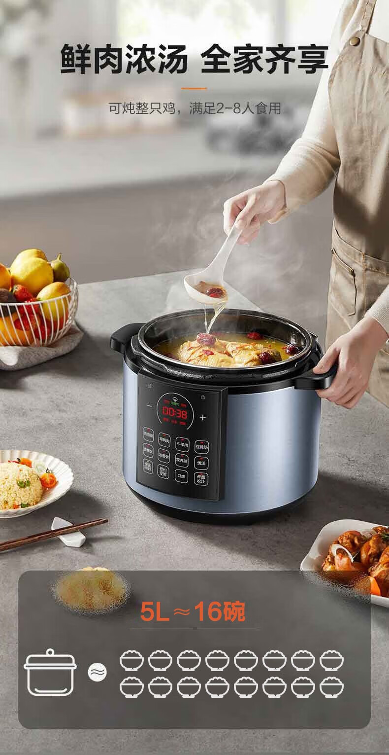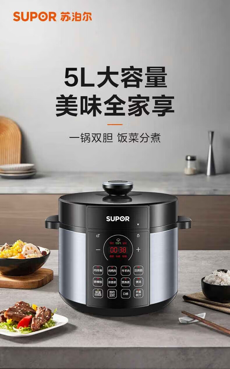苏泊尔(SUPOR)电压力锅5升大容量双胆SY-50YC8186/台 蓝色