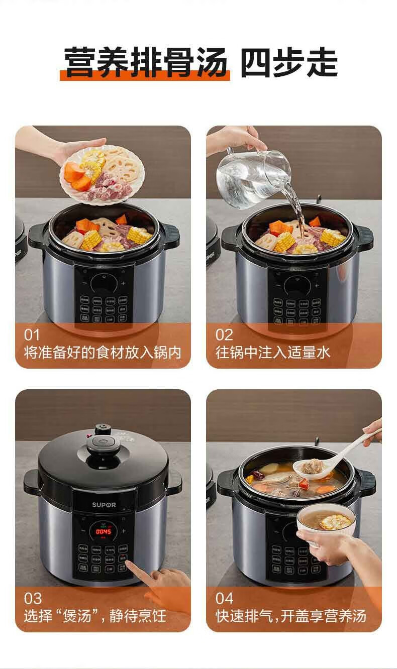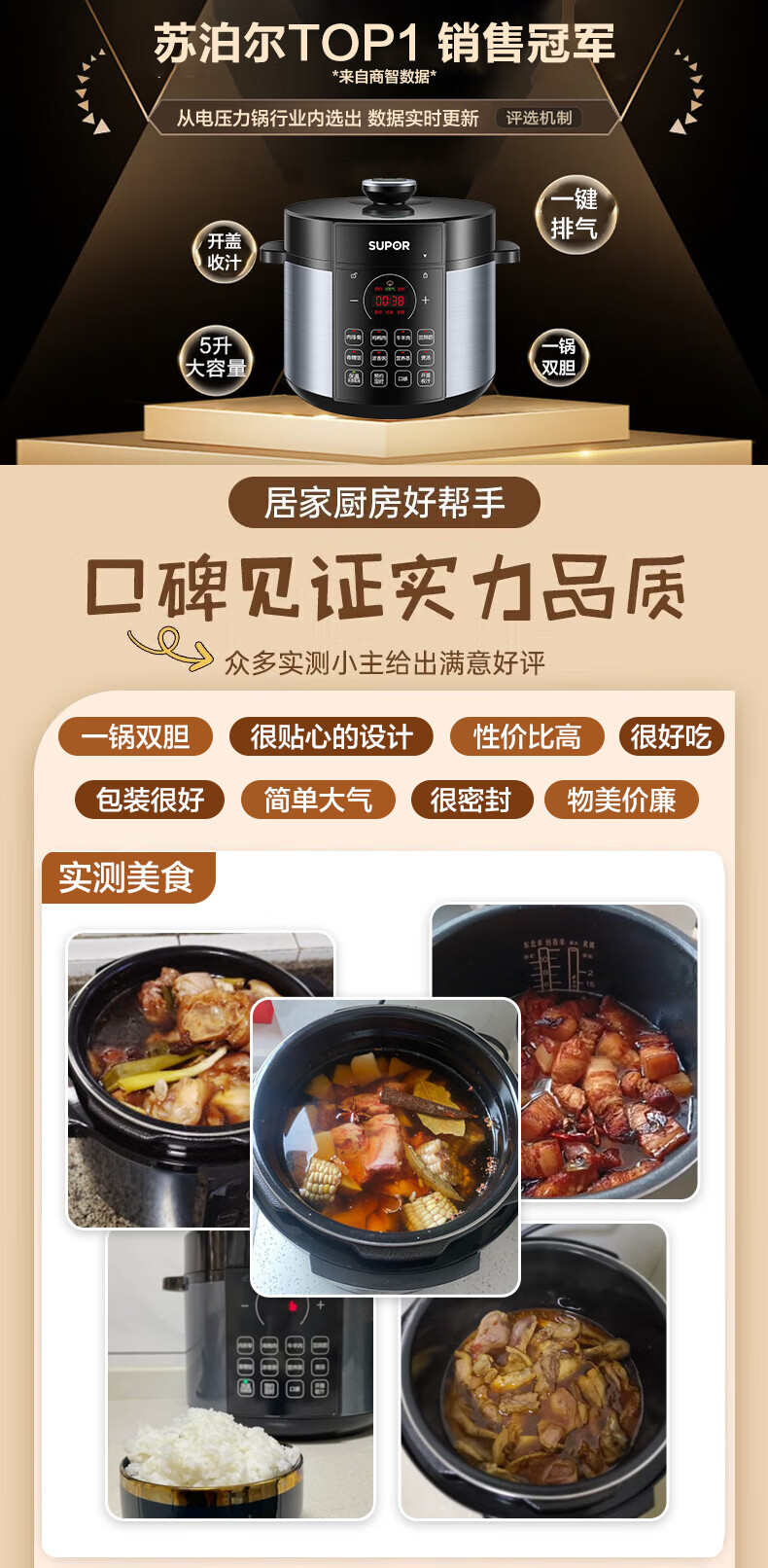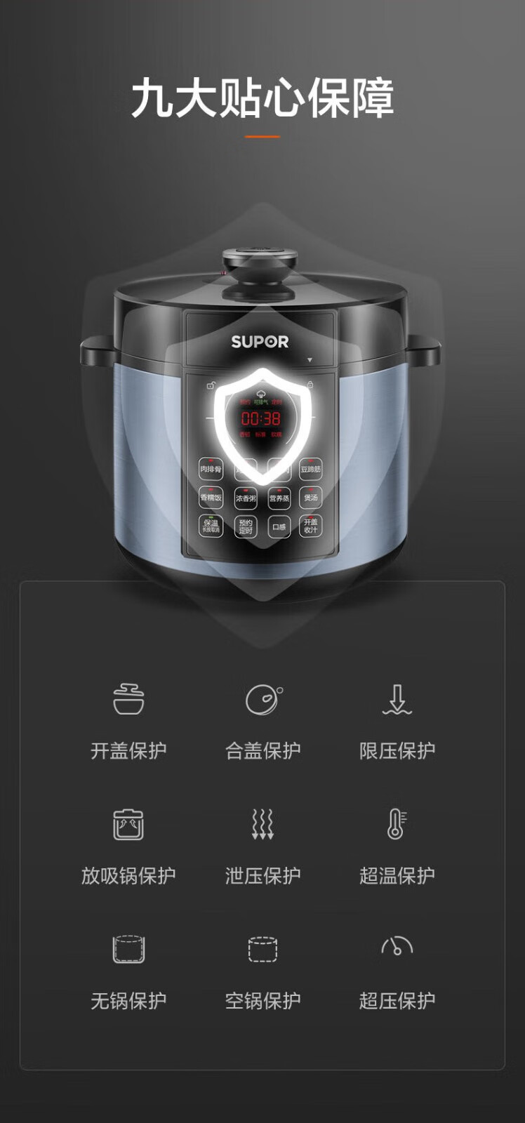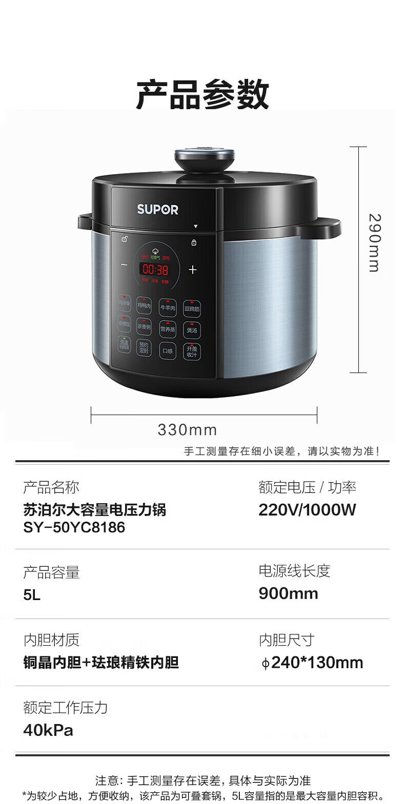 苏泊尔(SUPOR)电压力锅5升大容量双胆SY-50YC8186/台 蓝色