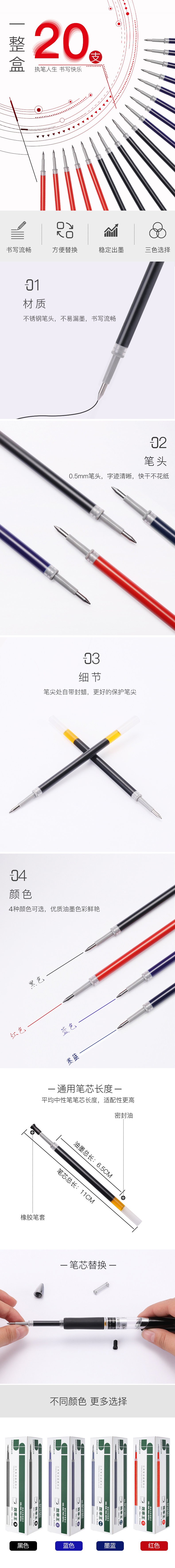 三木 GR5 按动中性笔替芯 子弹头0.5mm 20支/盒(计价单位:5盒) 红色