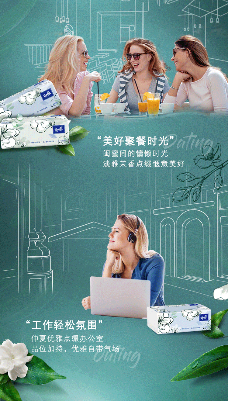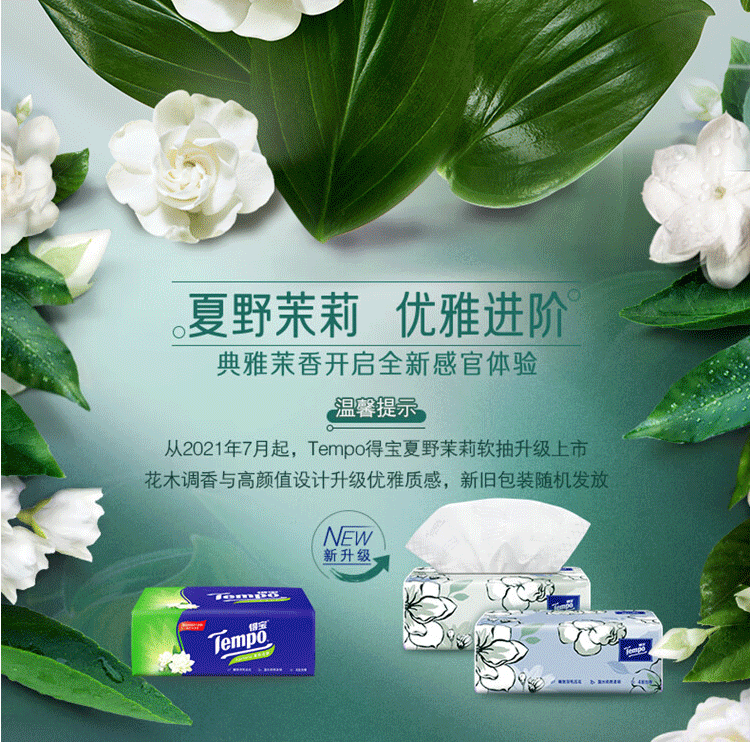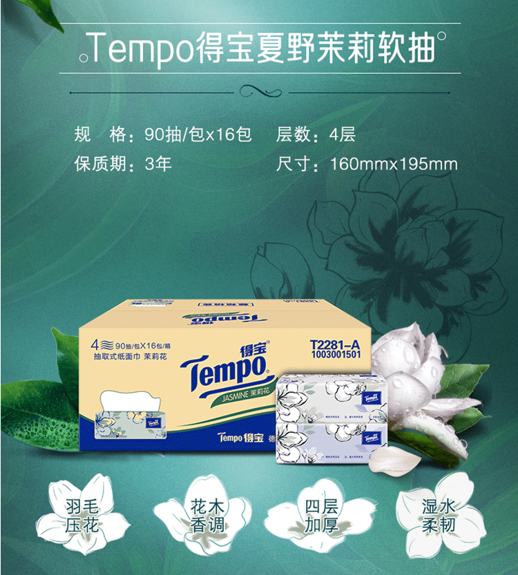 得宝(TEMPO)抽纸 茉莉花味90抽*16包(单位:箱) 本白色