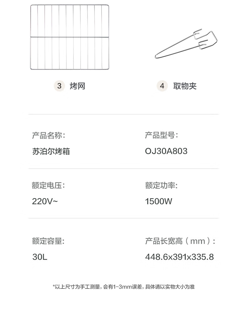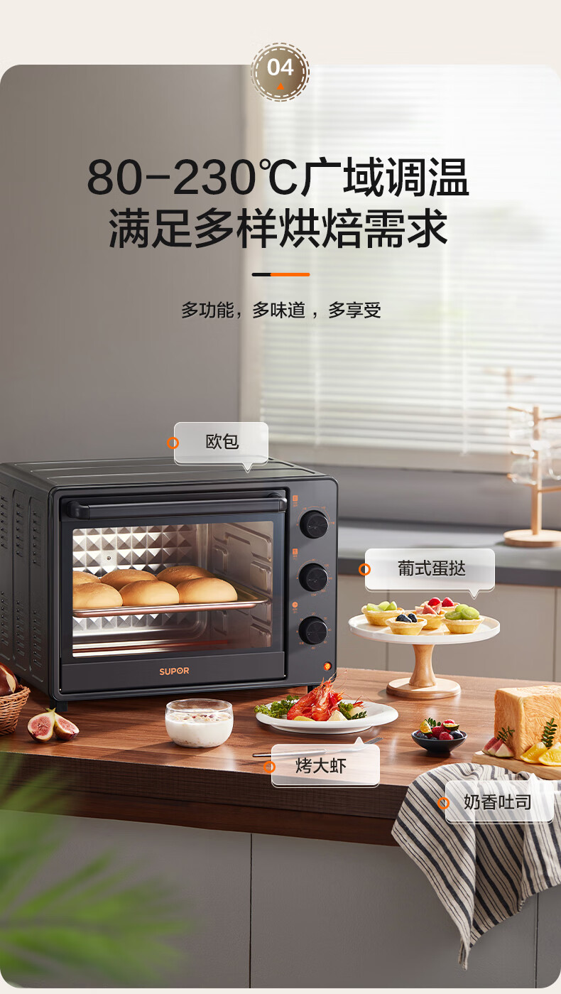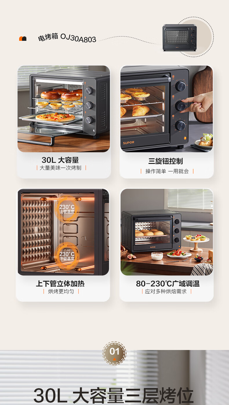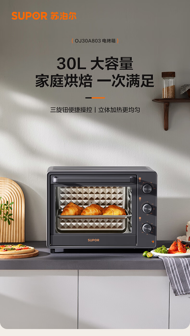 苏泊尔(SUPOR)电烤箱 家用30升 OJ30A803 可拆洗(台) 黑色