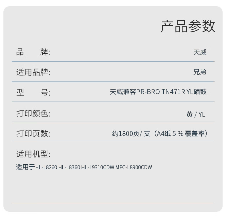 天威 TN471 黄色粉盒 适用兄弟L8260 L8360 L9310CDW 支 黄色