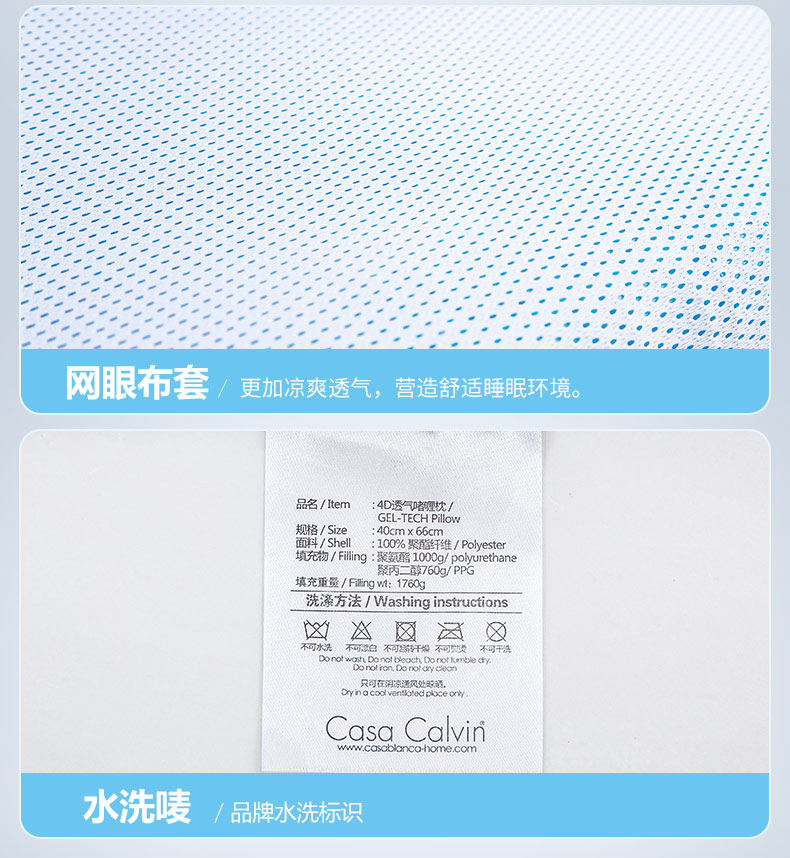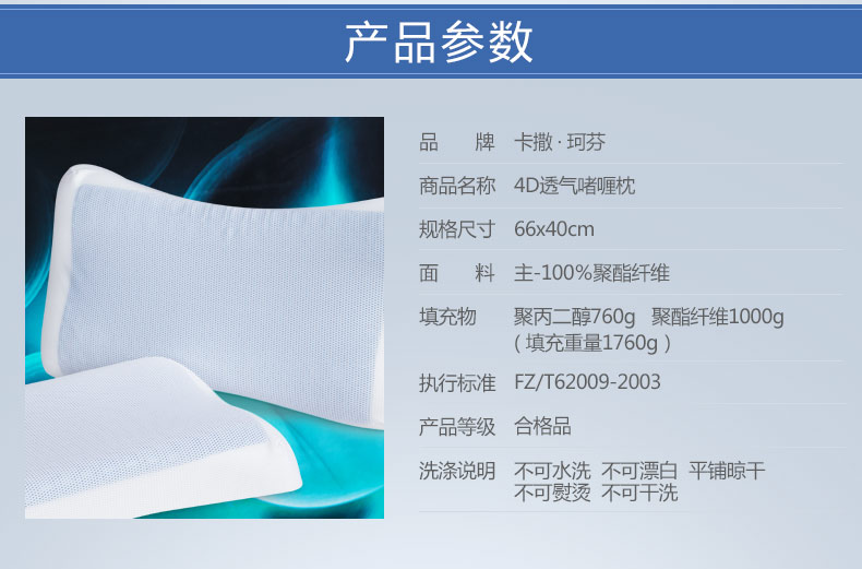 卡撒天娇(CASABLANCA)家纺 功能类4D透气啫喱枕芯40×66cm(单位/个) 白色 白色