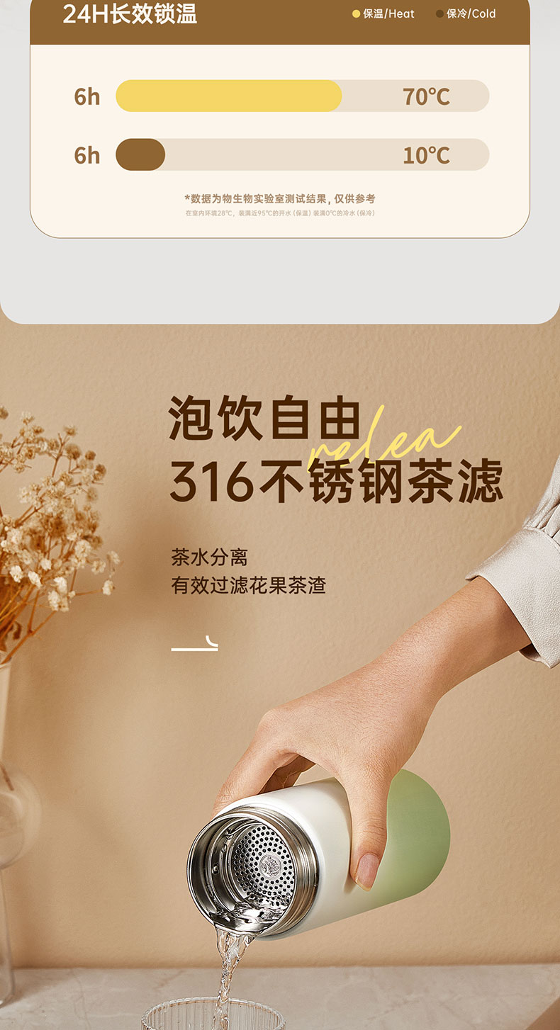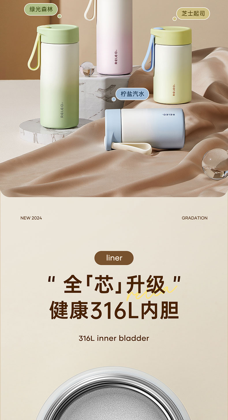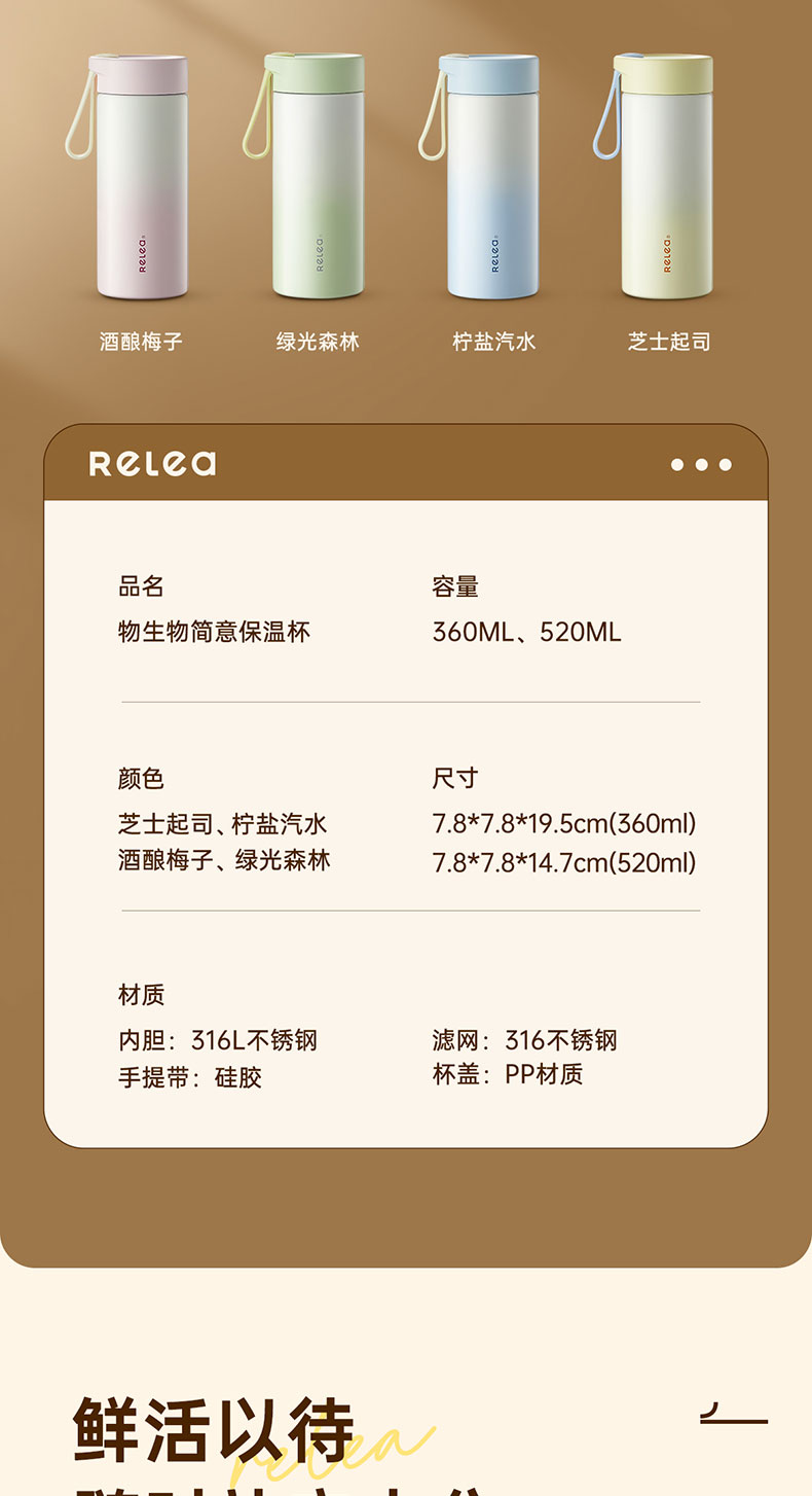物生物(RELEA)简意保温杯JV012466 单位:个 绿光森林360ML