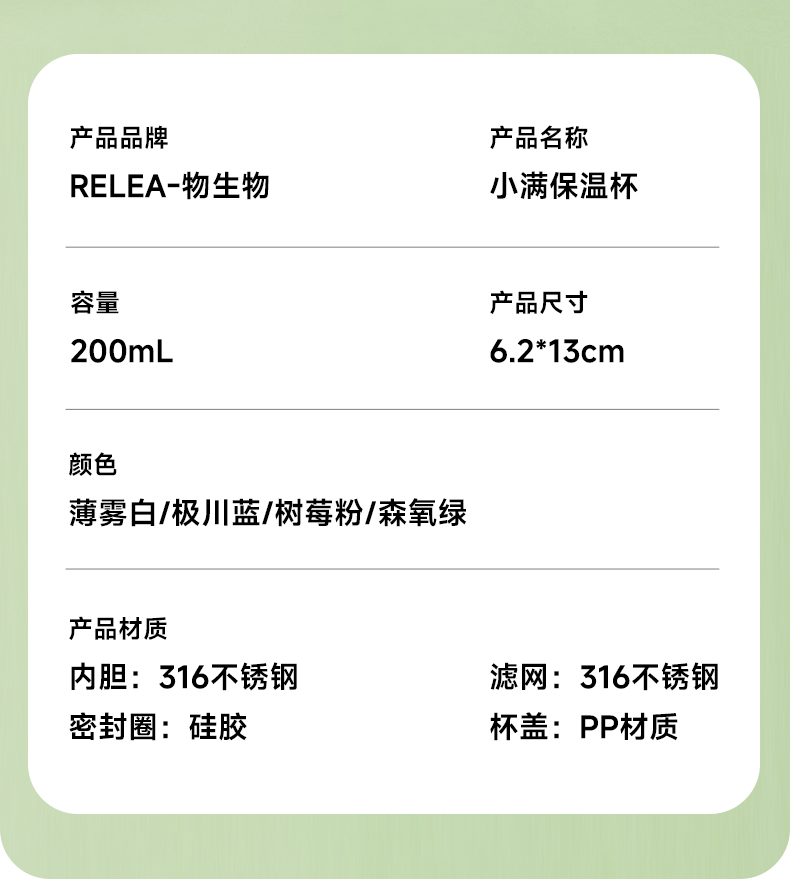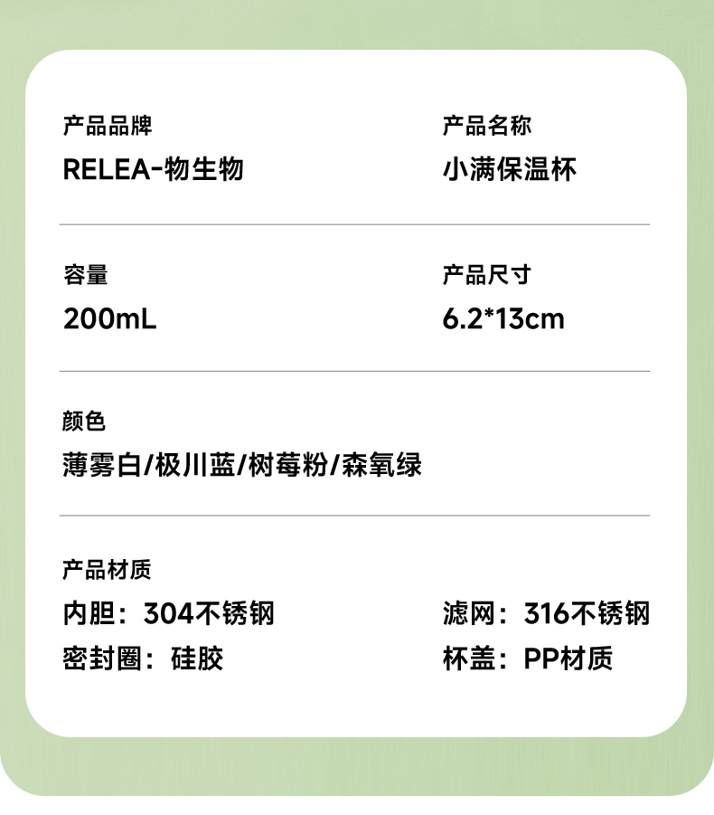 物生物(RELEA)小满口袋保温杯200ML JV012468 单位:个 树莓粉