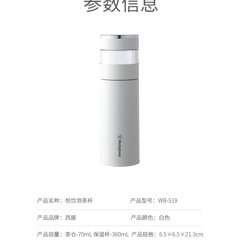 西屋(Westinghouse) 悦饮泡茶杯 WB-519 360ML 白色(单位:个)