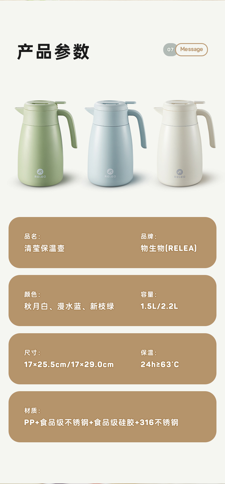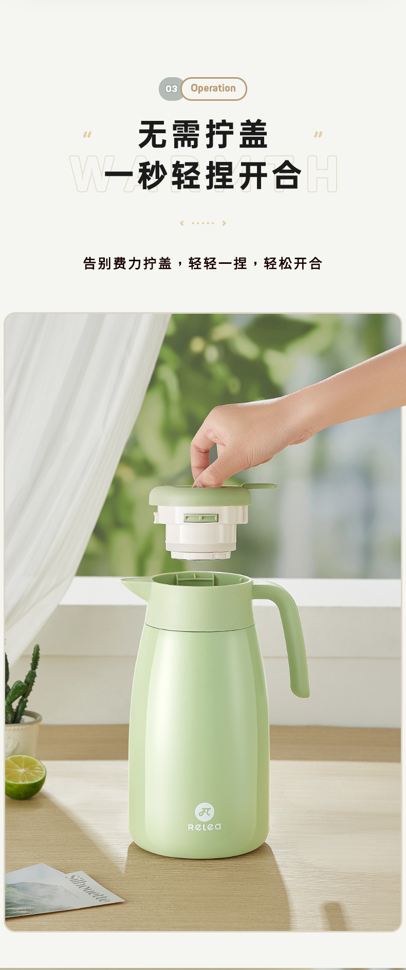 物生物(RELEA) 清莹保温壶 JV022303-2000-LS00 漫水蓝2000ML 漫水蓝2000ML(单位:个)