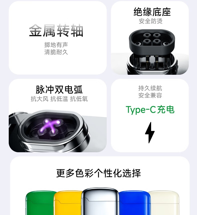 有色(yoose)充电打火机电子脉冲防风双电弧 DH01 单位:个 克莱因蓝