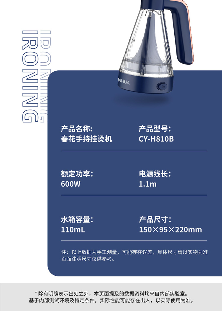 春花(CHUNHUA) 手持挂烫机 CY-H810B 600w 深蓝色(单位:台)