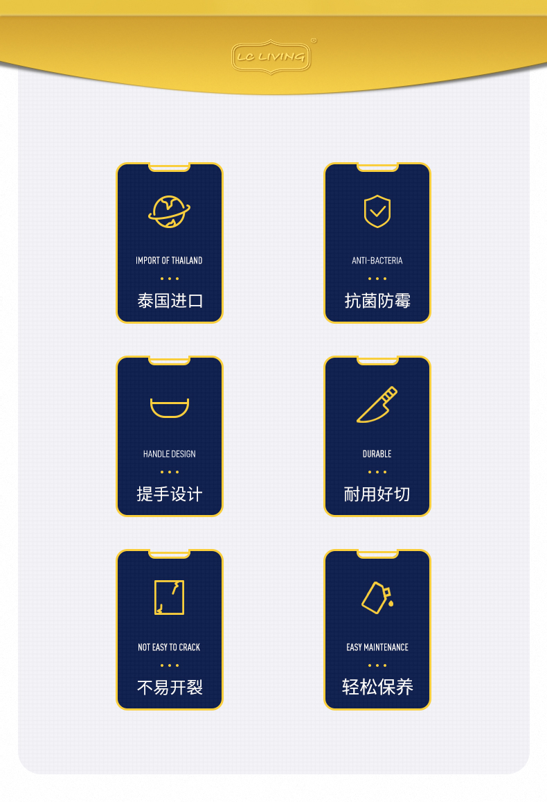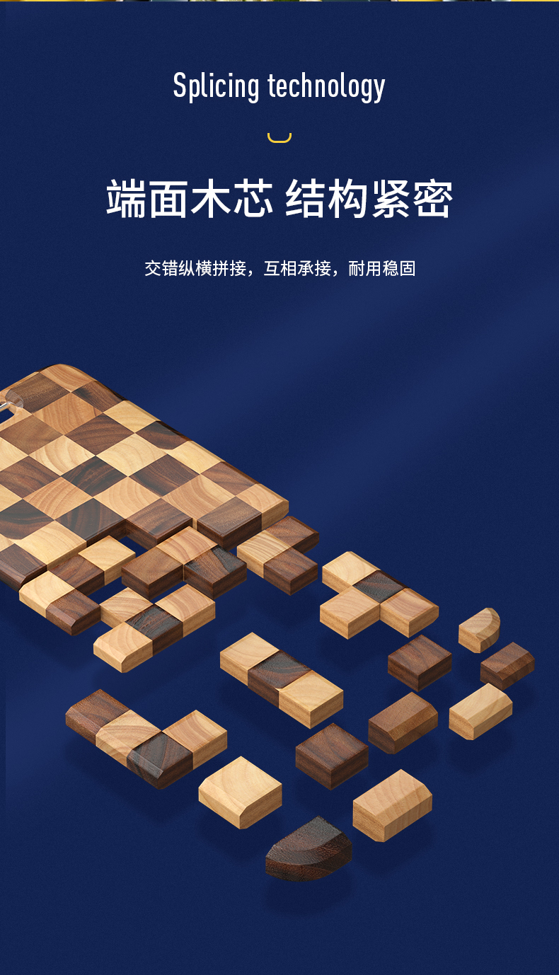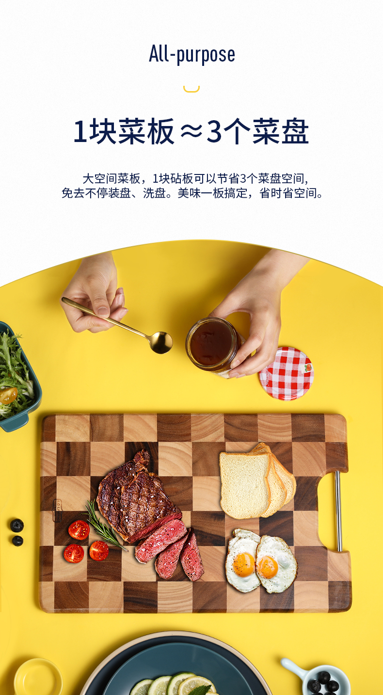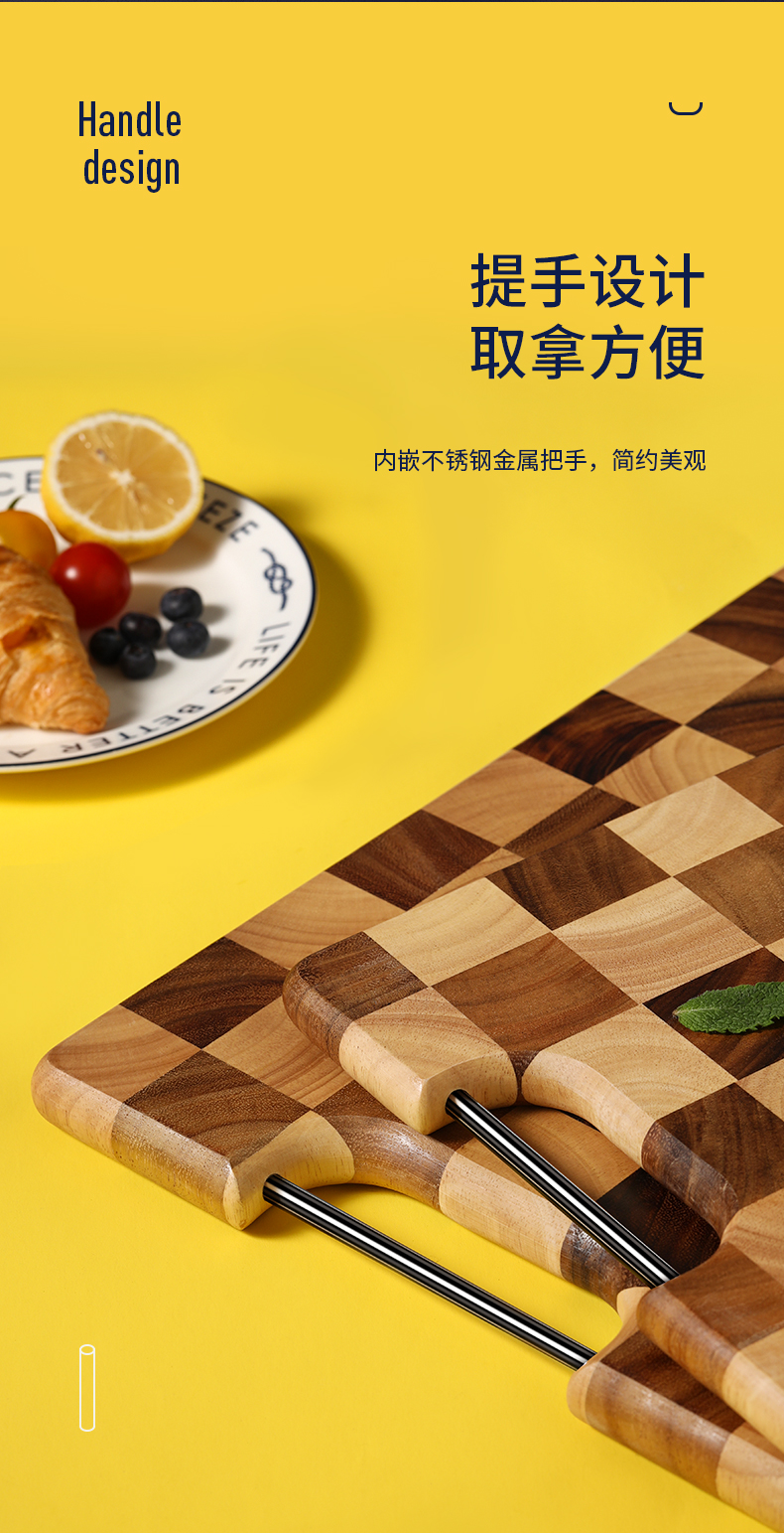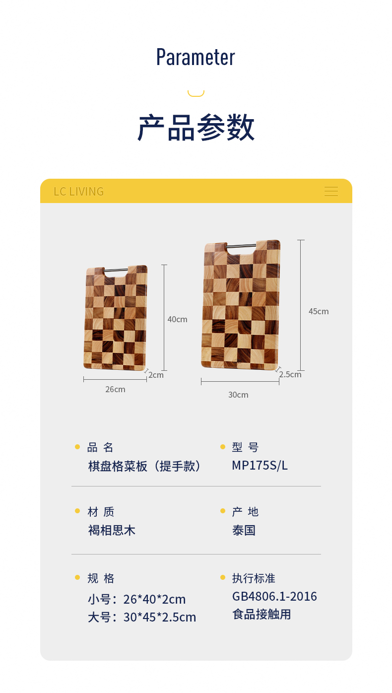 LC LIVING MP175S棋盘格长方菜板带提手小号40x26x2cm(30年树龄/金属提手)(单位:个) 原木色