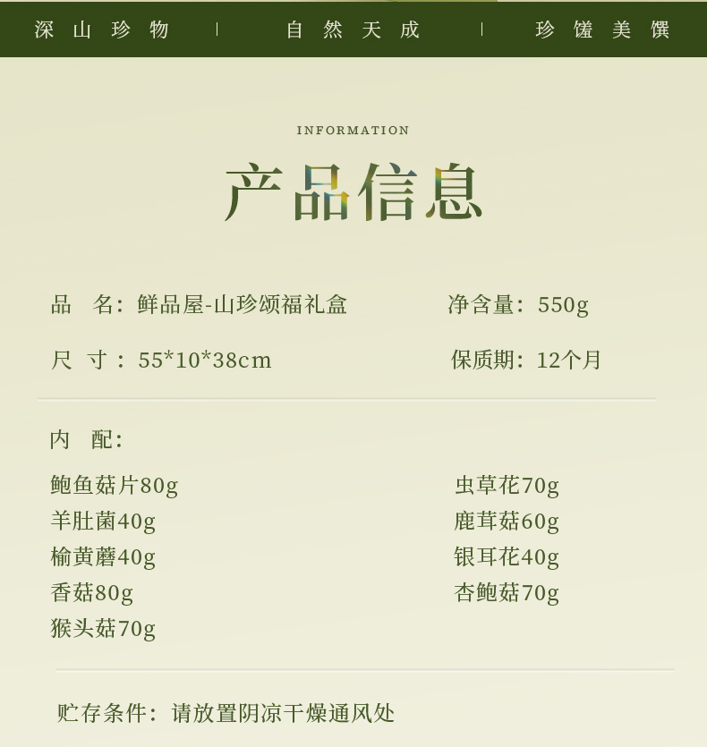 鲜品屋山珍颂福山珍礼盒 550g 单位:盒 橙色