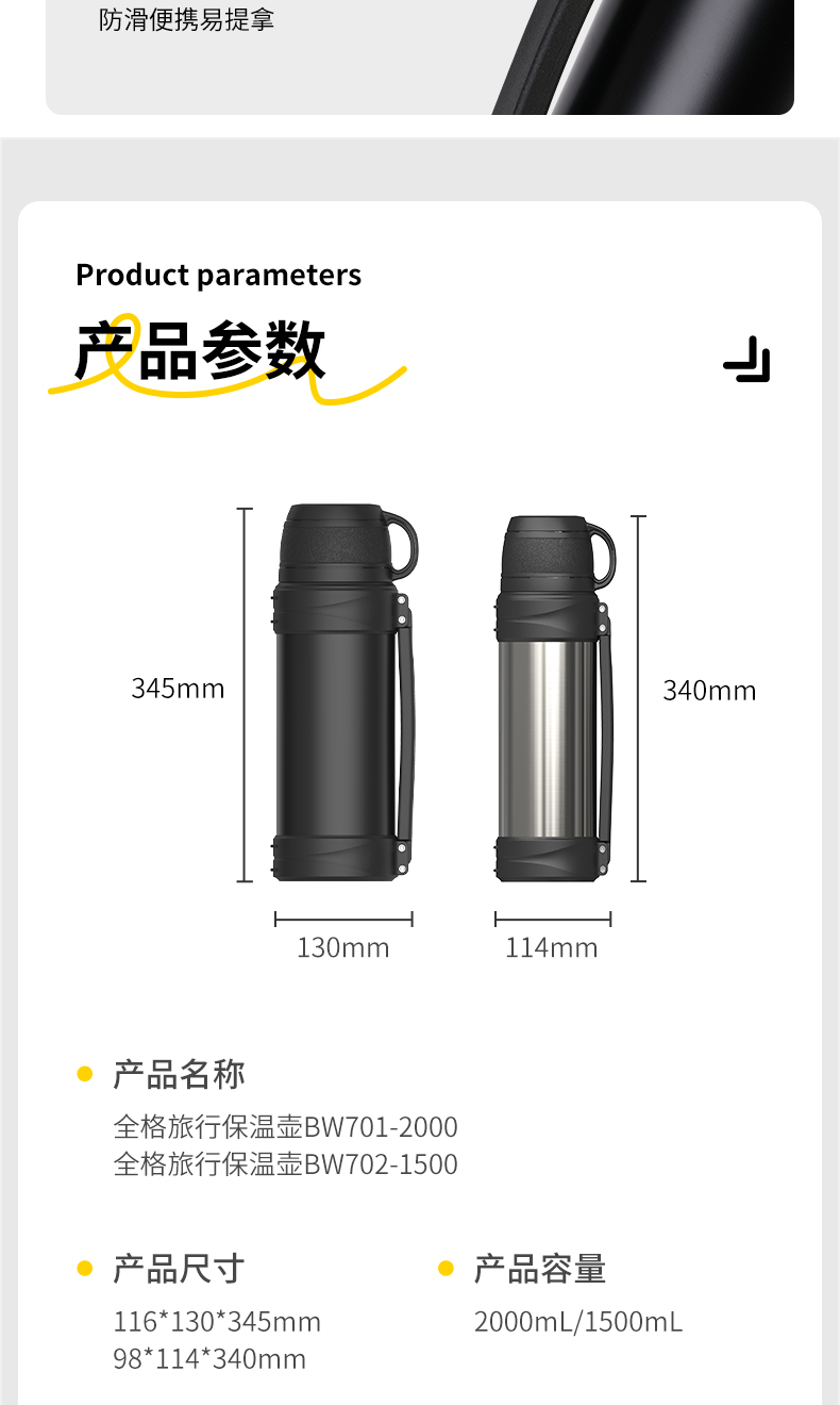 全格(Quange)旅行保温壶BW702-1500(1.5L)SJ040903(单位:个) 黑色