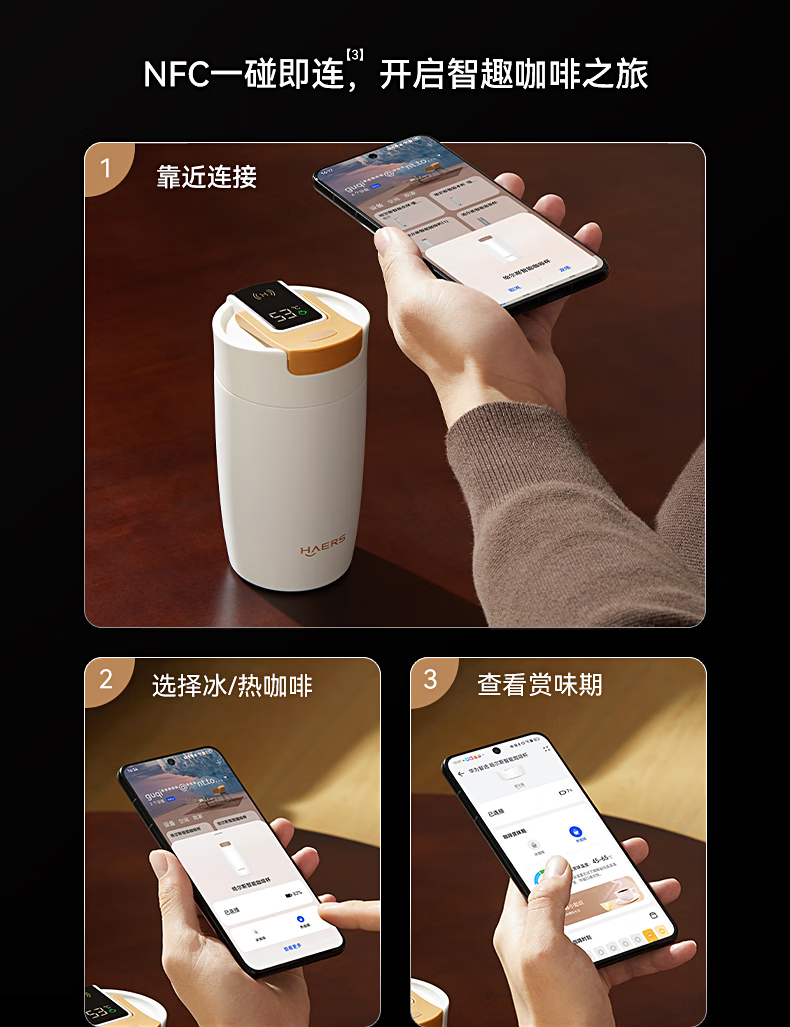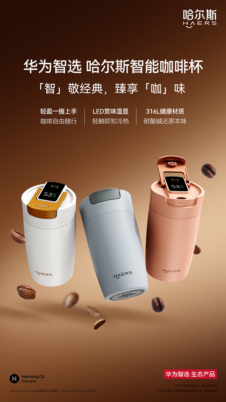 华为智选 哈尔斯智能咖啡杯 HGM-350-001 370ml(单位:个) 粉色
