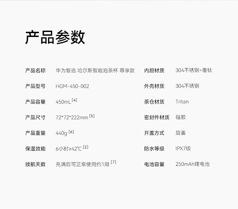 华为智选 哈尔斯智能泡茶杯 尊享款 HGM-450-002 450ml(单位:套) 白色