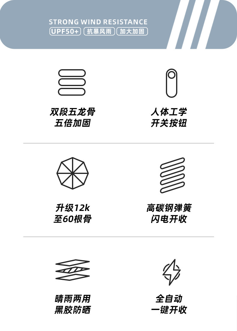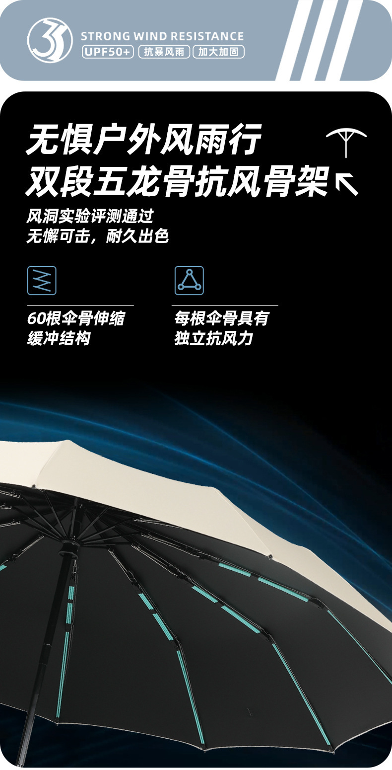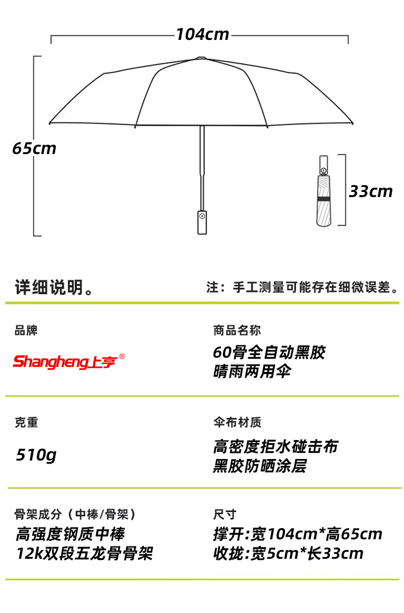 上亨(shangheng) SHZH-YS02 【60骨☆双骨+加固抗风】12K全自动 60骨防紫外线雨伞 藏青色(单位:个)