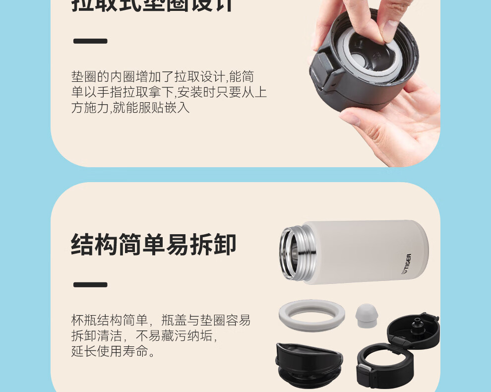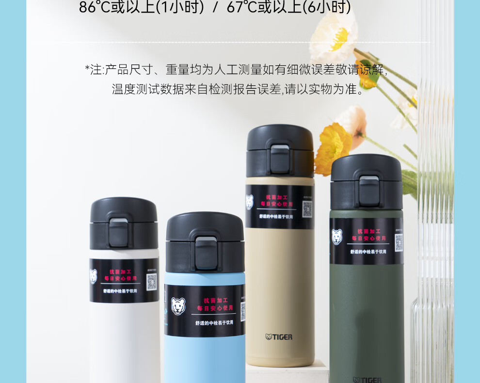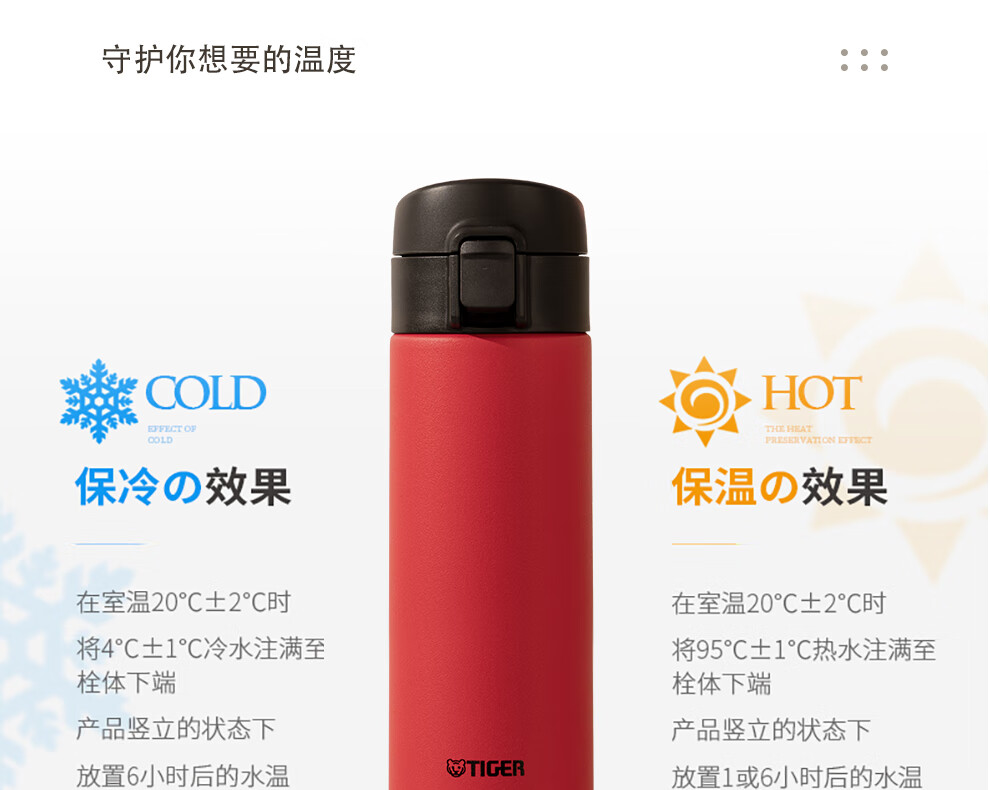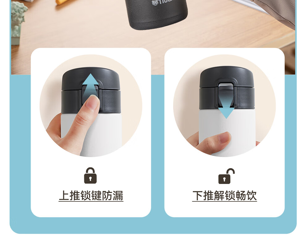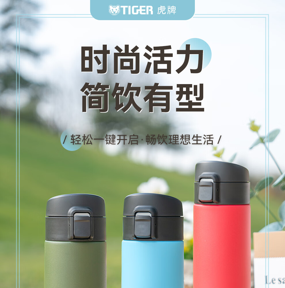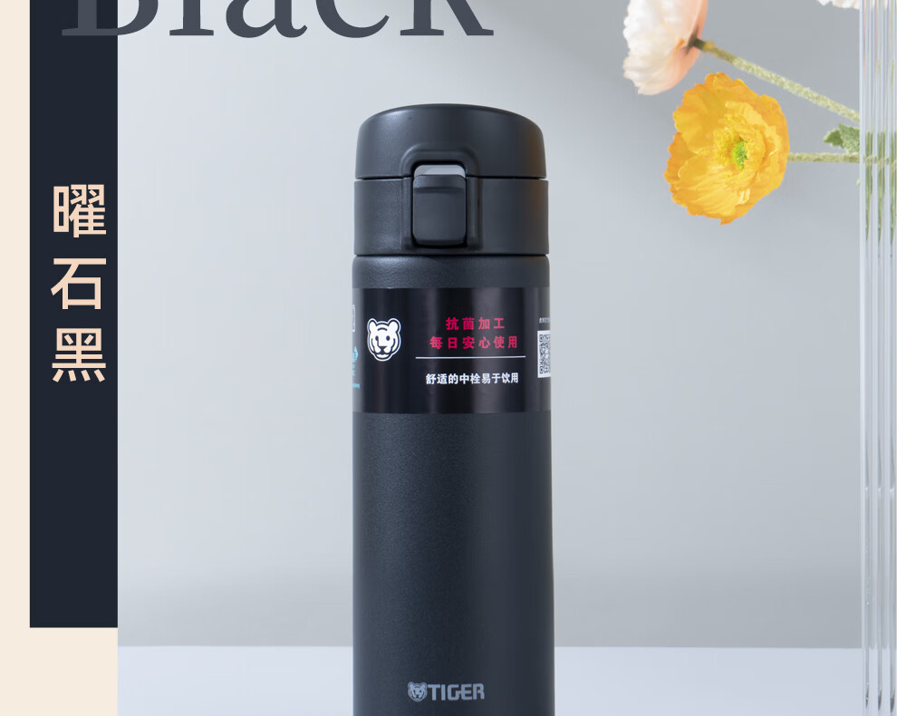虎牌(TIGER)家居馆保温杯男女水杯茶杯车载杯不锈钢一键开启弹盖杯MKA-K48C 480ml 单位/只 黑色