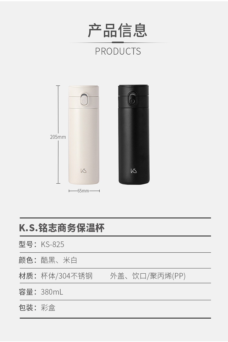 K.S.铭志商务保温杯 KS-825 380ml(单位:只) 黑色