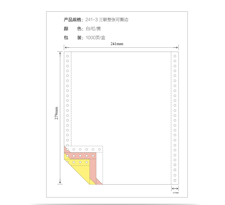 乐活天章 241-3S 1000页/箱 三联整张撕边 电脑打印纸 混色(白红黄)(单位:箱)