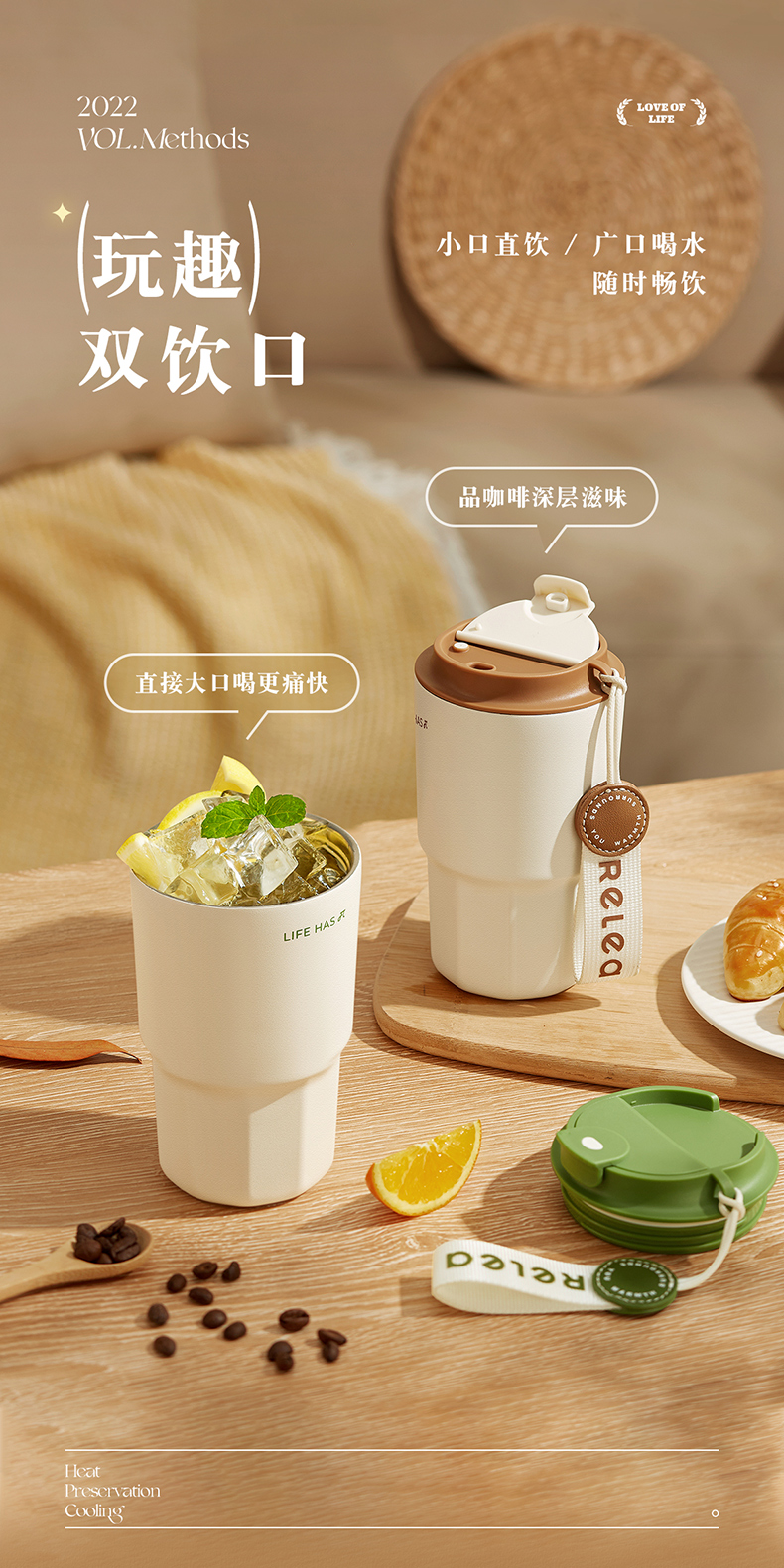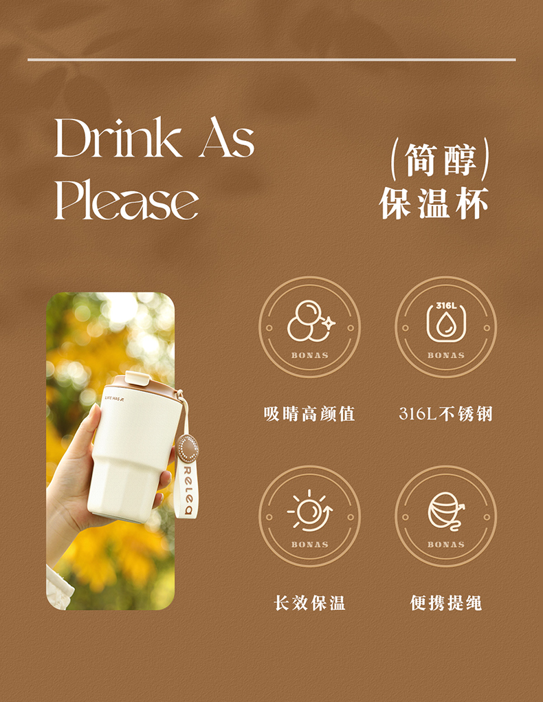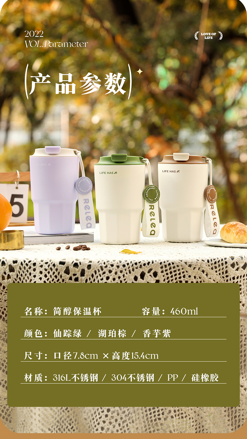 物生物(RELEA) JV012263-0460-VS00 316不锈钢460ML 简醇保温杯 仙踪绿(单位:个)