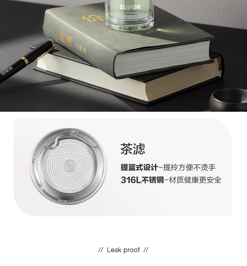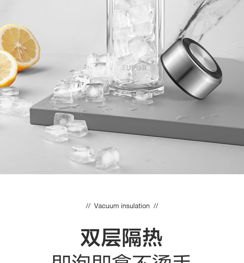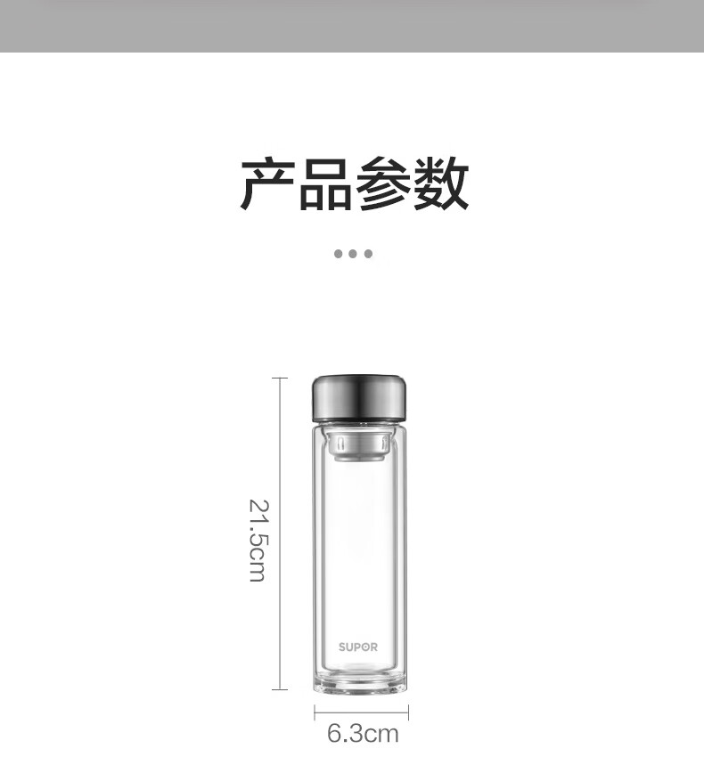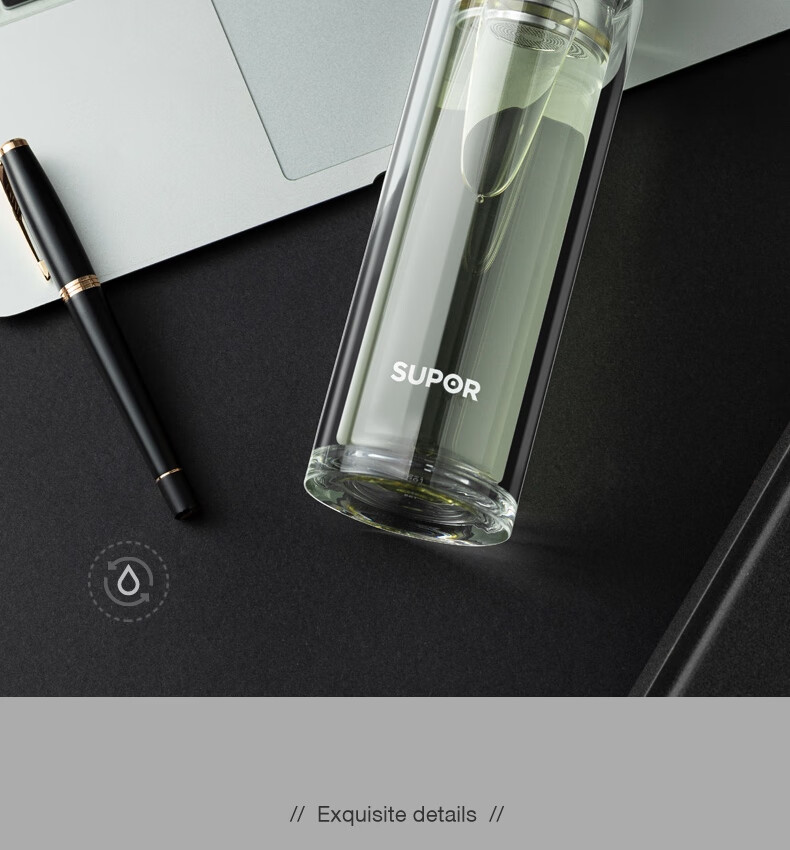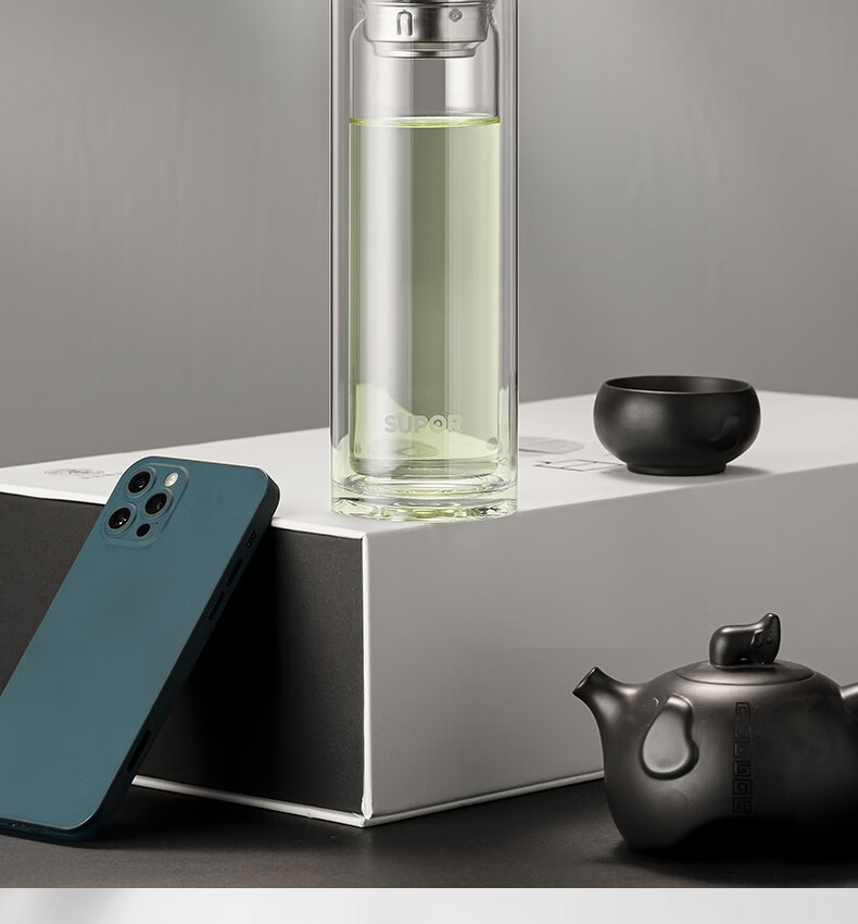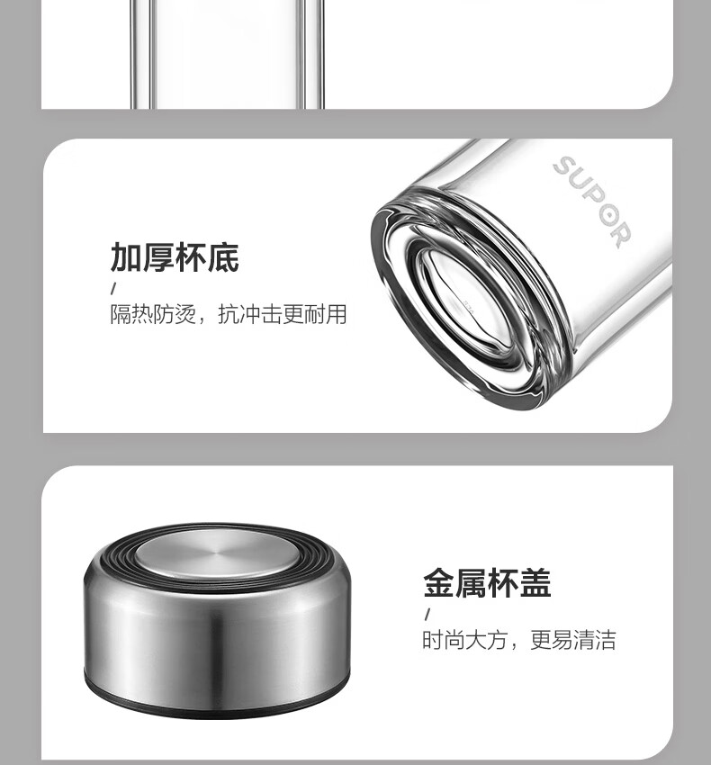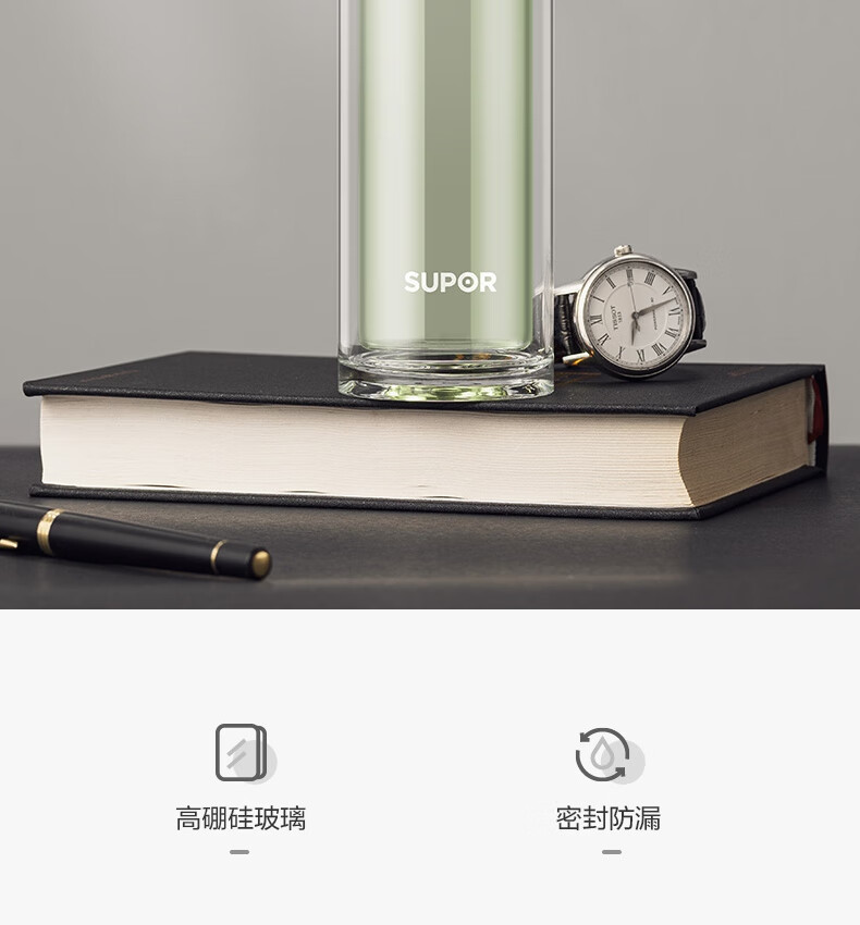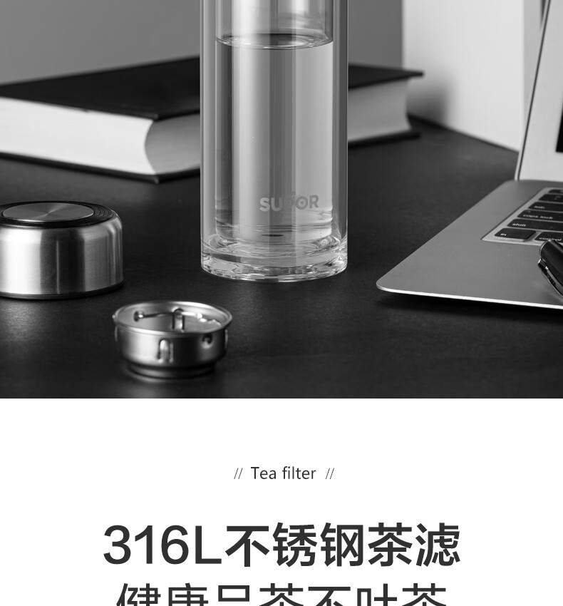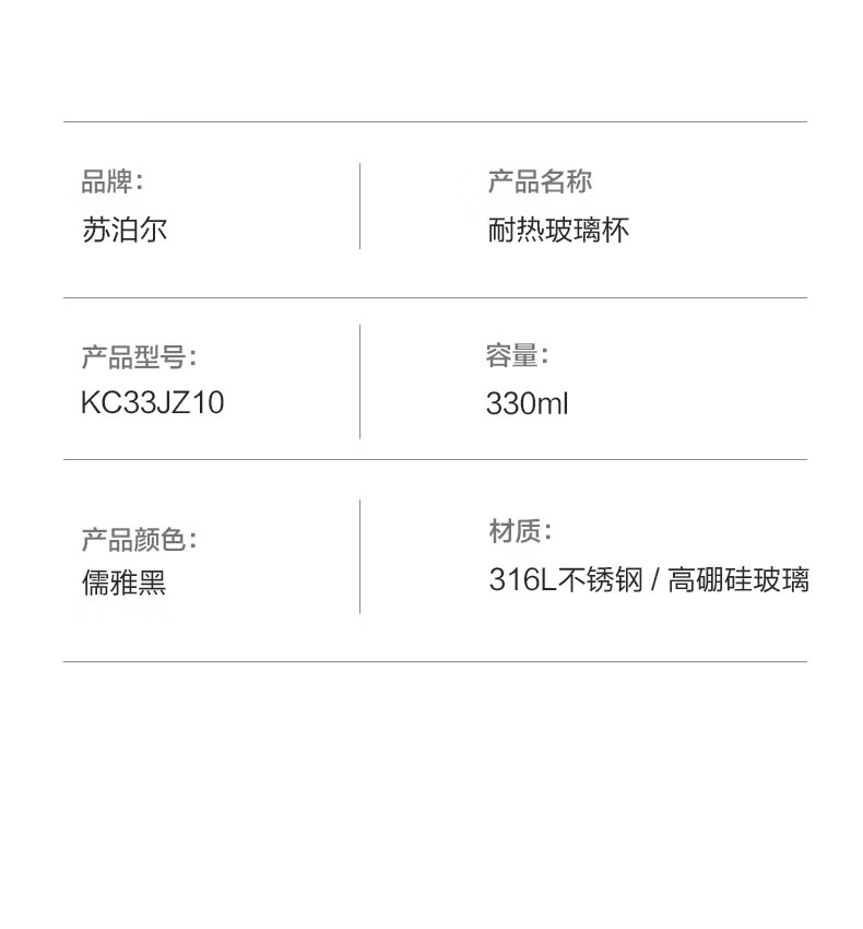 苏泊尔(SUPOR) 玻璃杯双层商务办公车载水杯 KC33JZ10 330ml 儒雅黑(单位:个)