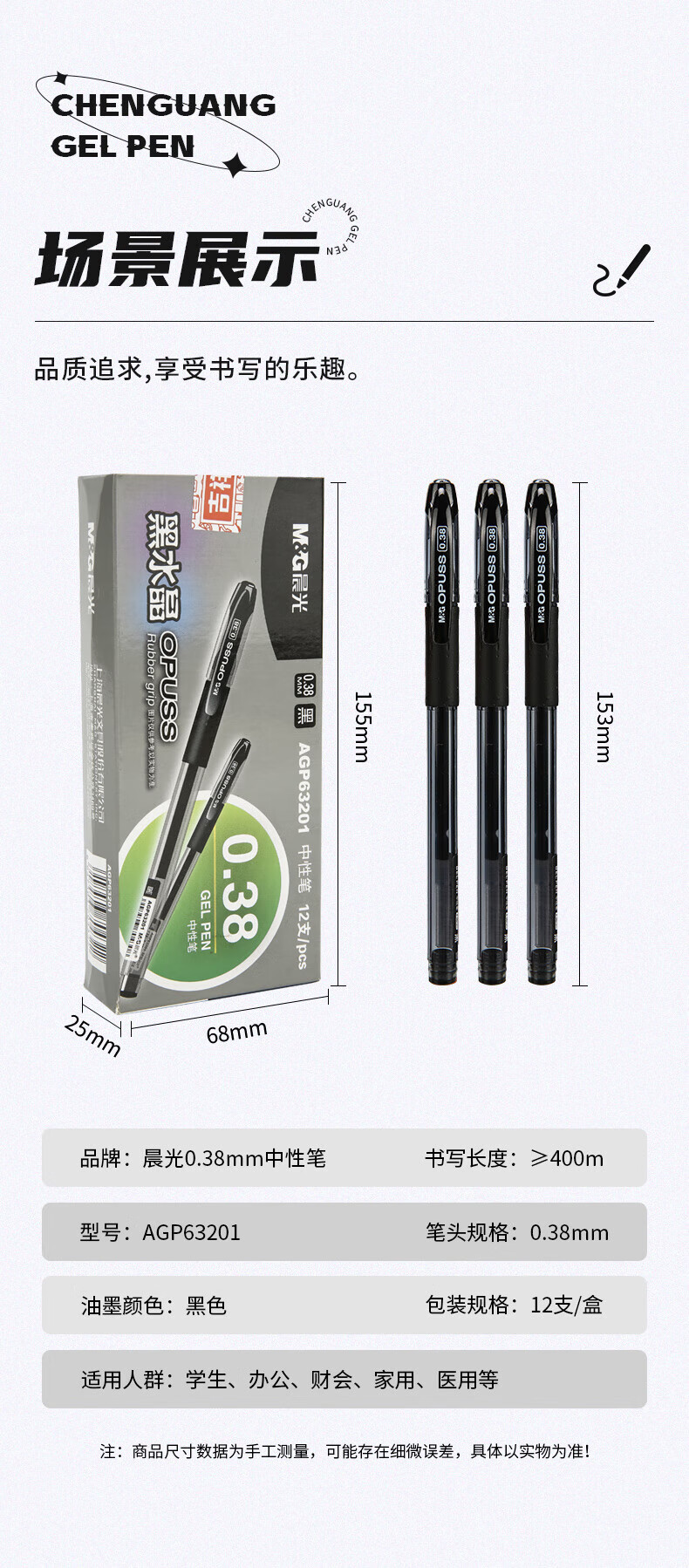 晨光(M&G)黑水晶系列拔盖中性笔0.38mm签字笔水性笔学习办公用水笔黑色全针管拔帽款 AGP63201 6支装