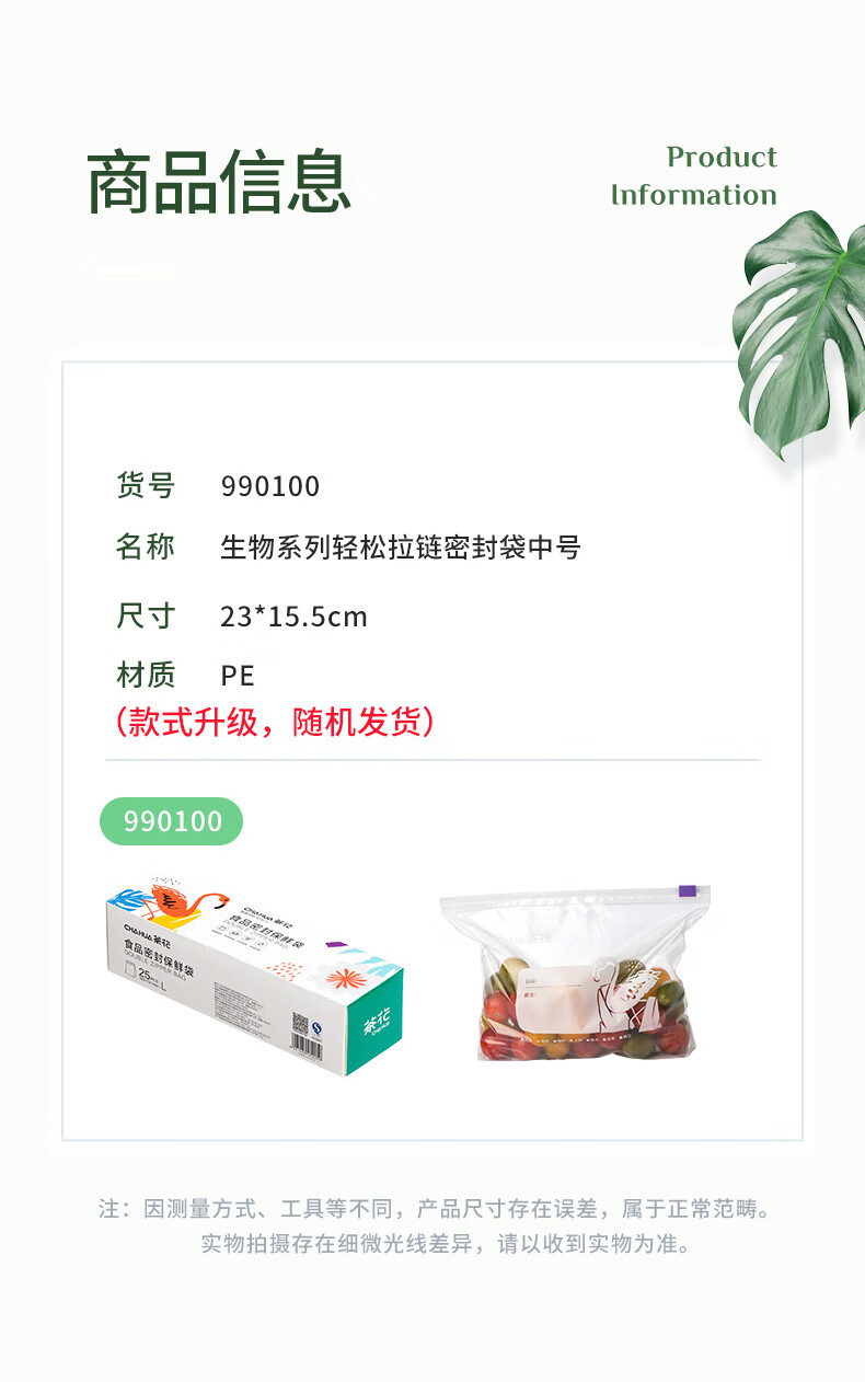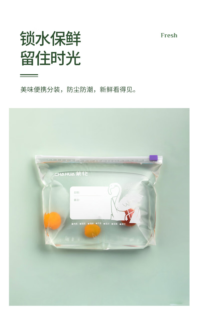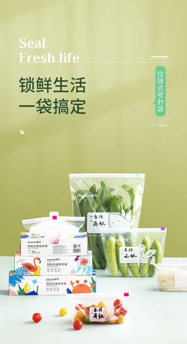 茶花收纳袋 拉链密封袋食品密实袋保鲜袋 中号(20只)990100