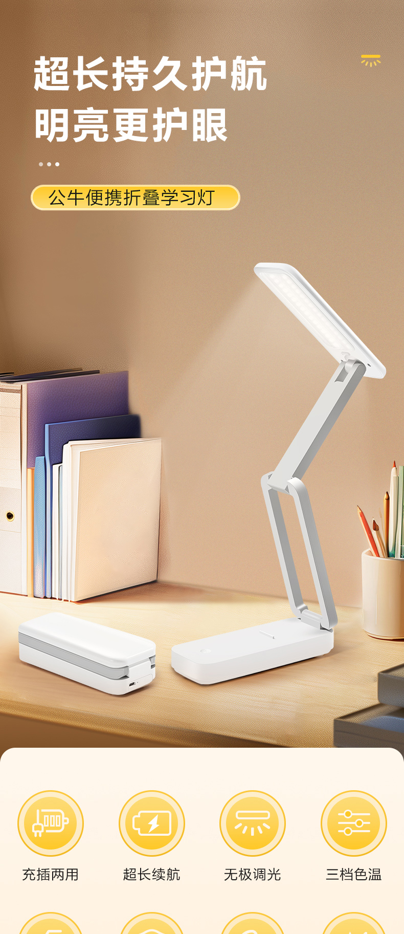 公牛(BULL) ML-J009Y-CD 额定功率5W 迷你折叠便携台灯 白色(单位:台)