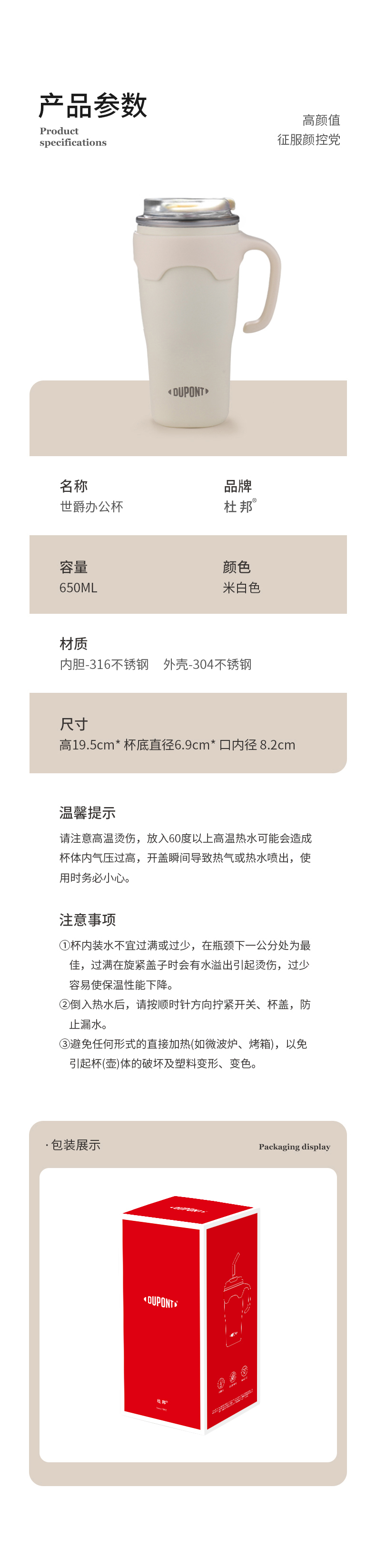 杜邦(DUPONT) PBD-013 650ml 世爵办公杯 白色(单位:个)