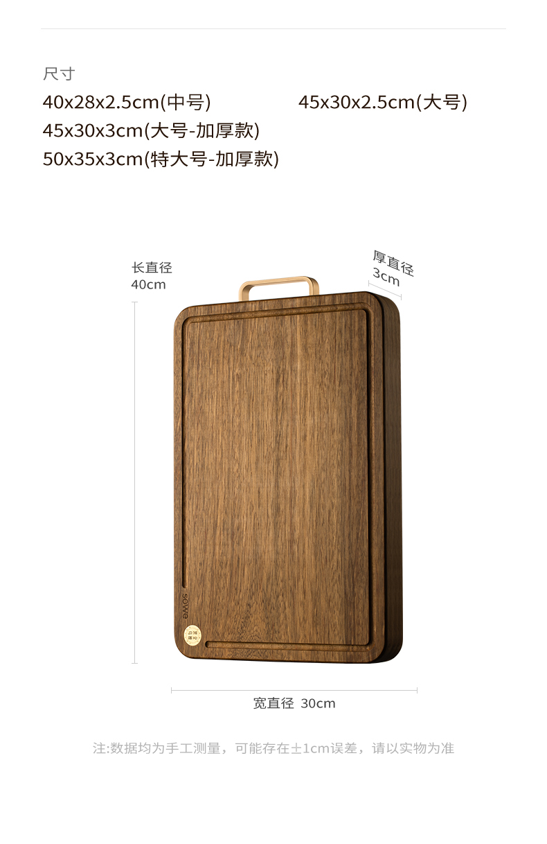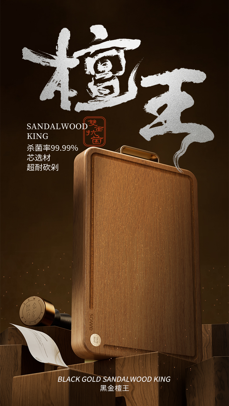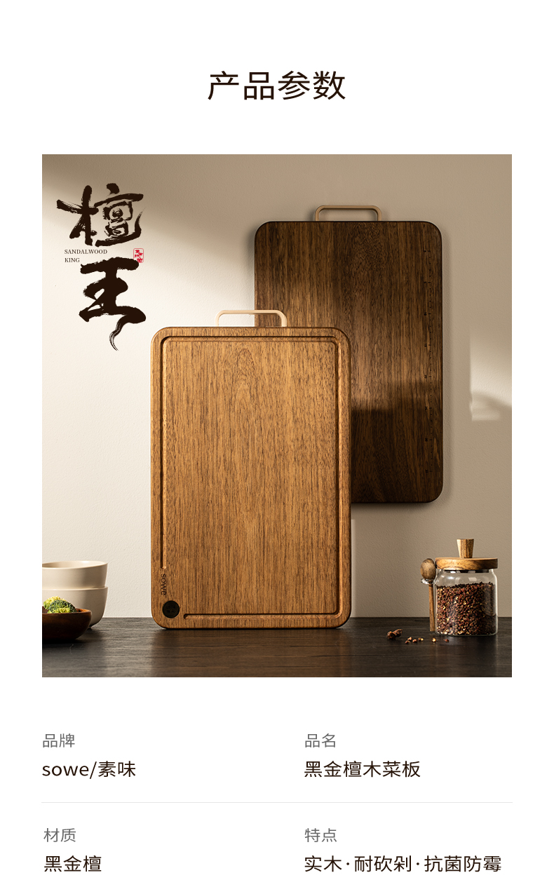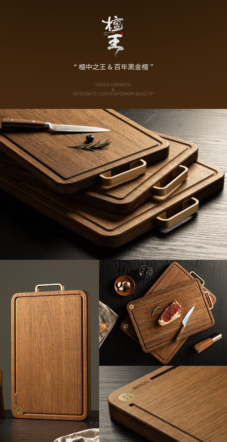 素味(SOWE) S-BW40H31 菜板中号25mm 百年系列黑金乌檀木 棕色(单位:个)