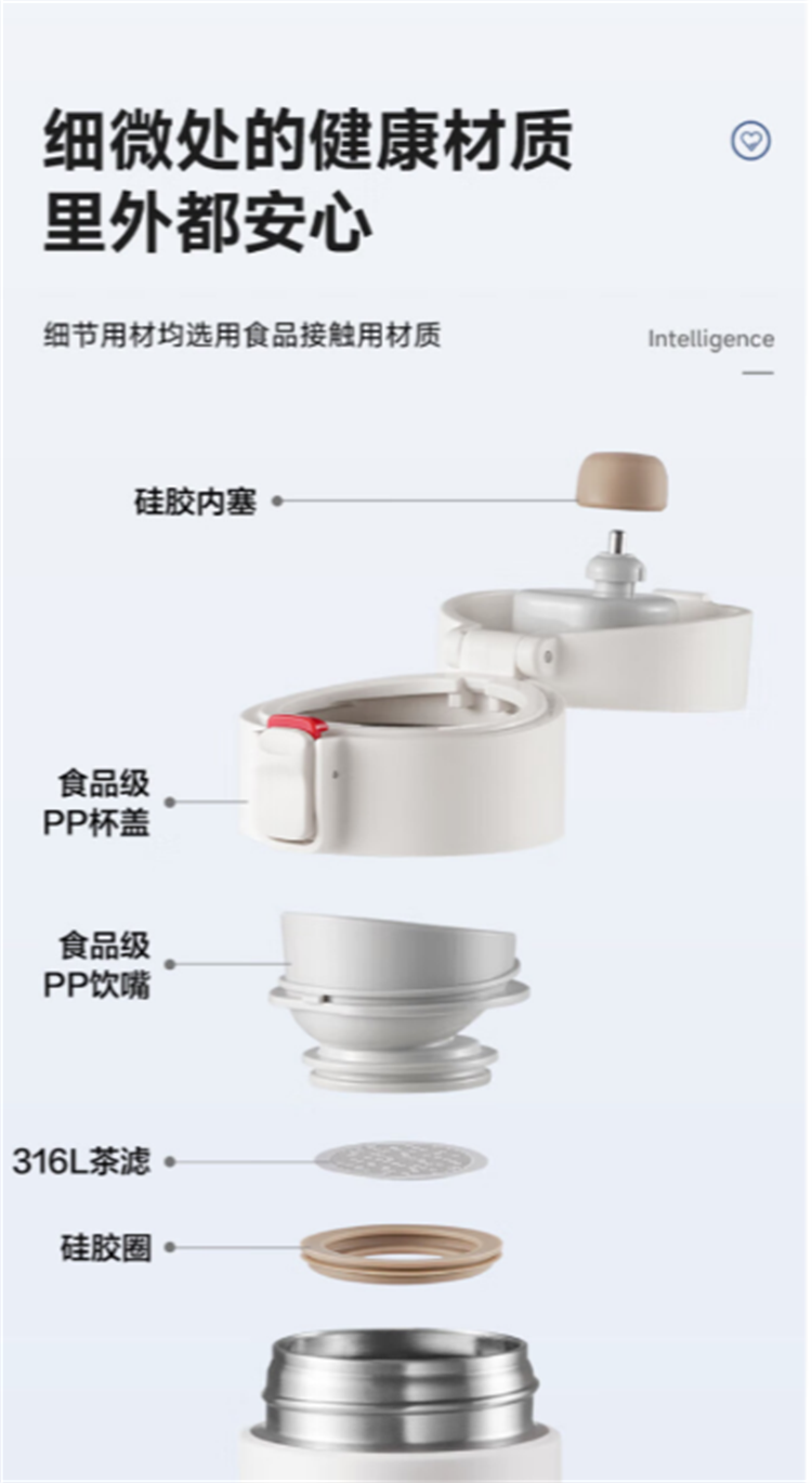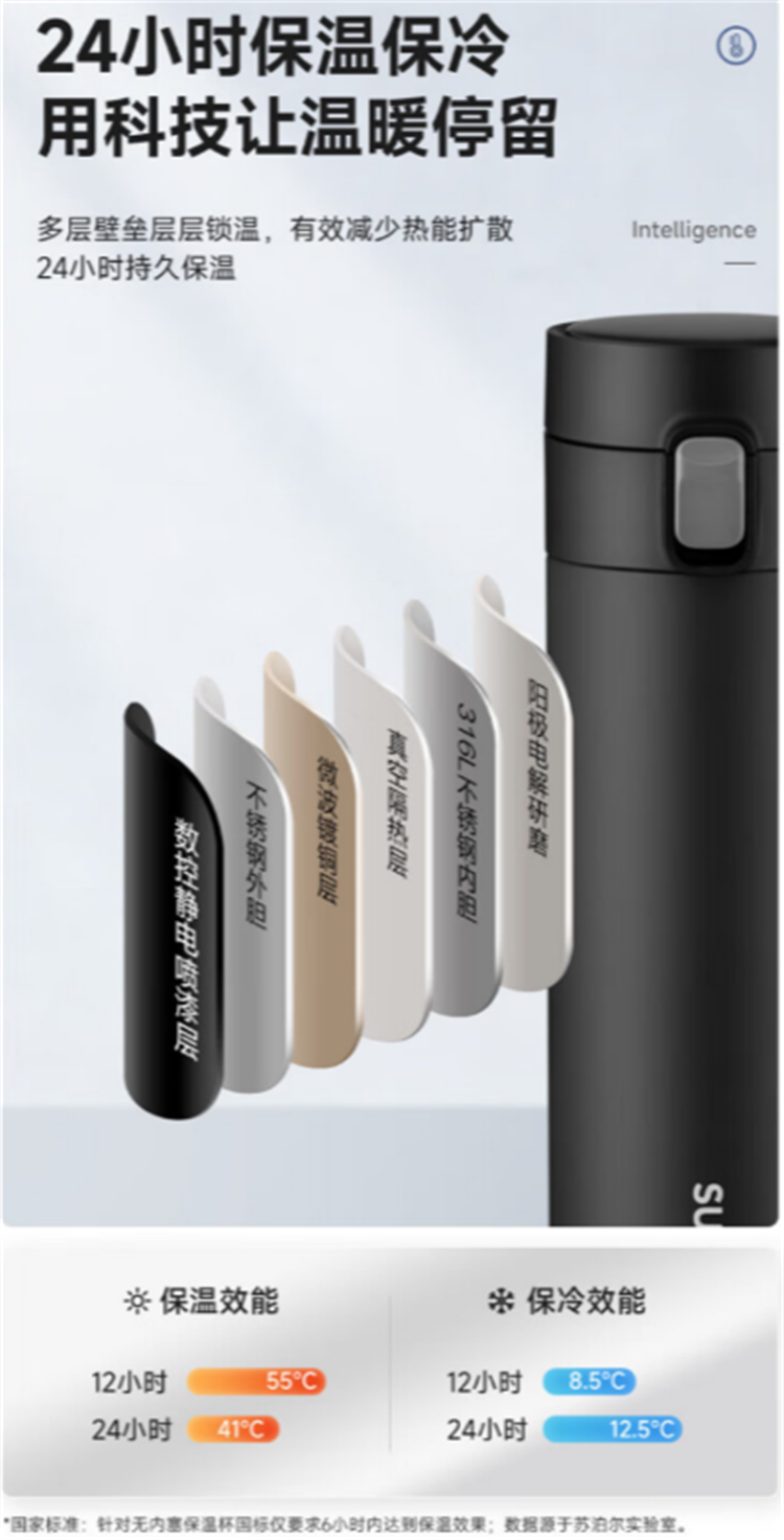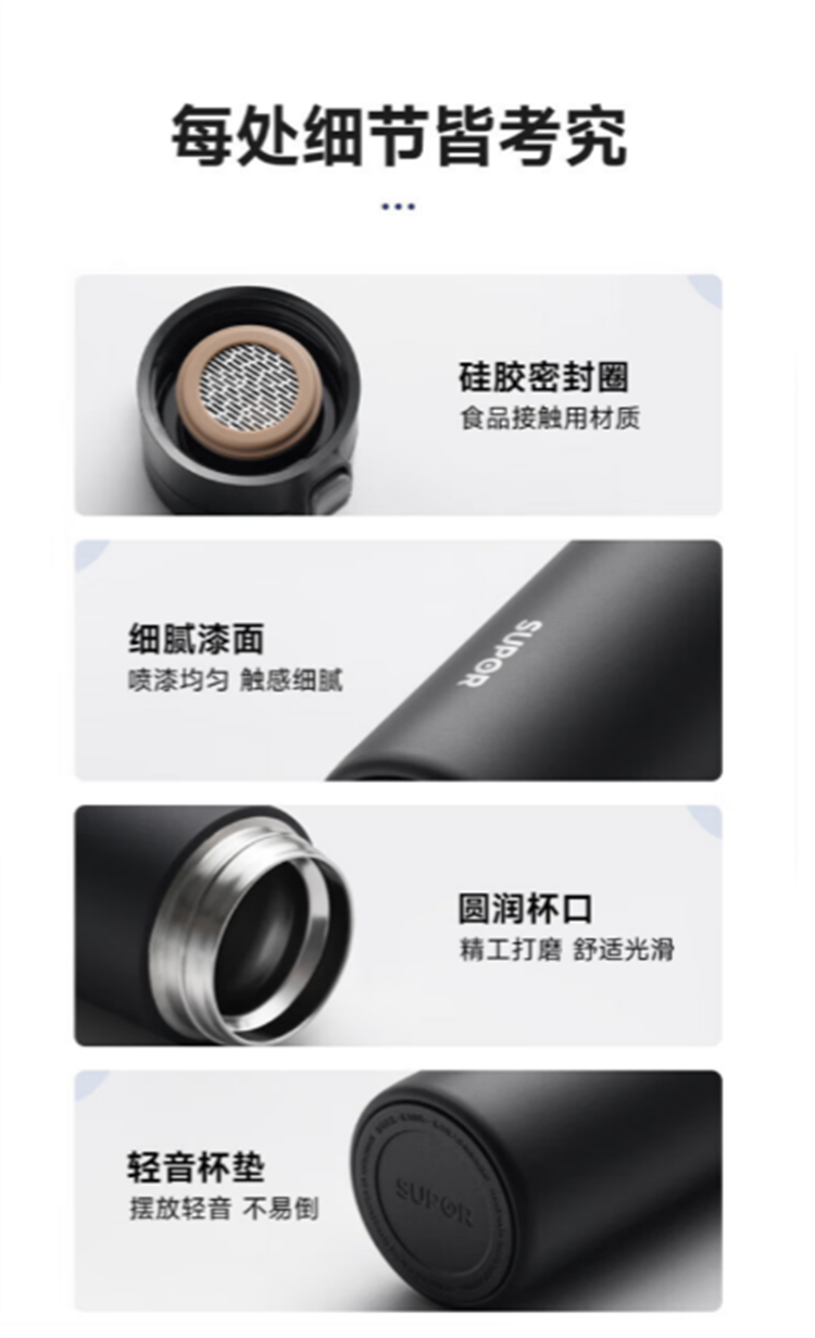 苏泊尔(SUPOR) KC50KL20 500ml 一键开合保温杯 儒雅黑(单位:个)