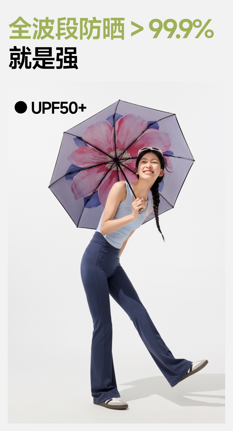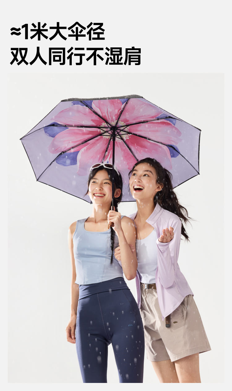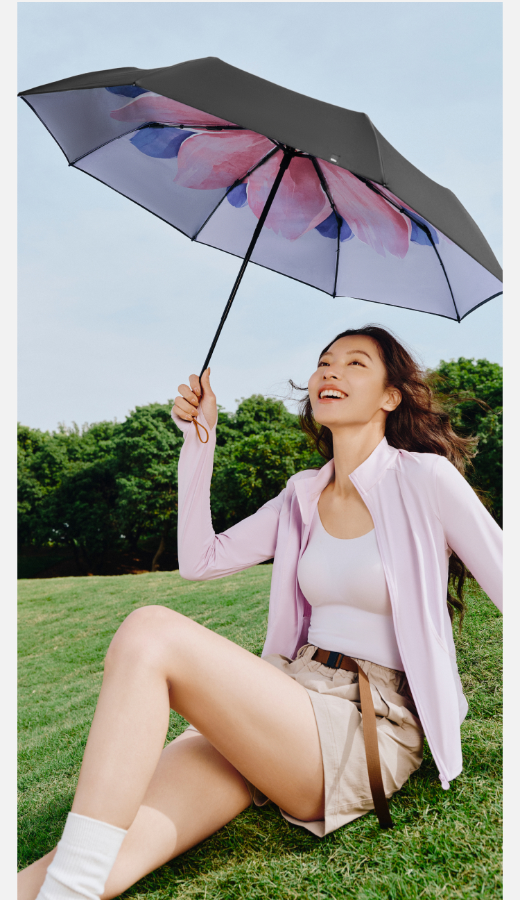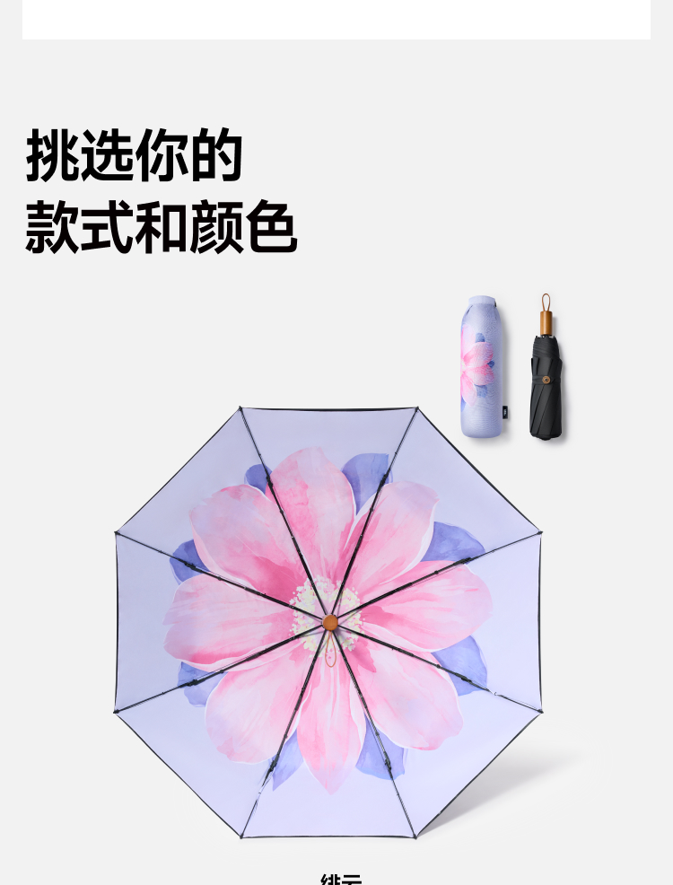 蕉下(beneunder) BM662 三折黑胶防晒伞 复古水彩在黑暗中绽放 绯云(单位:把)