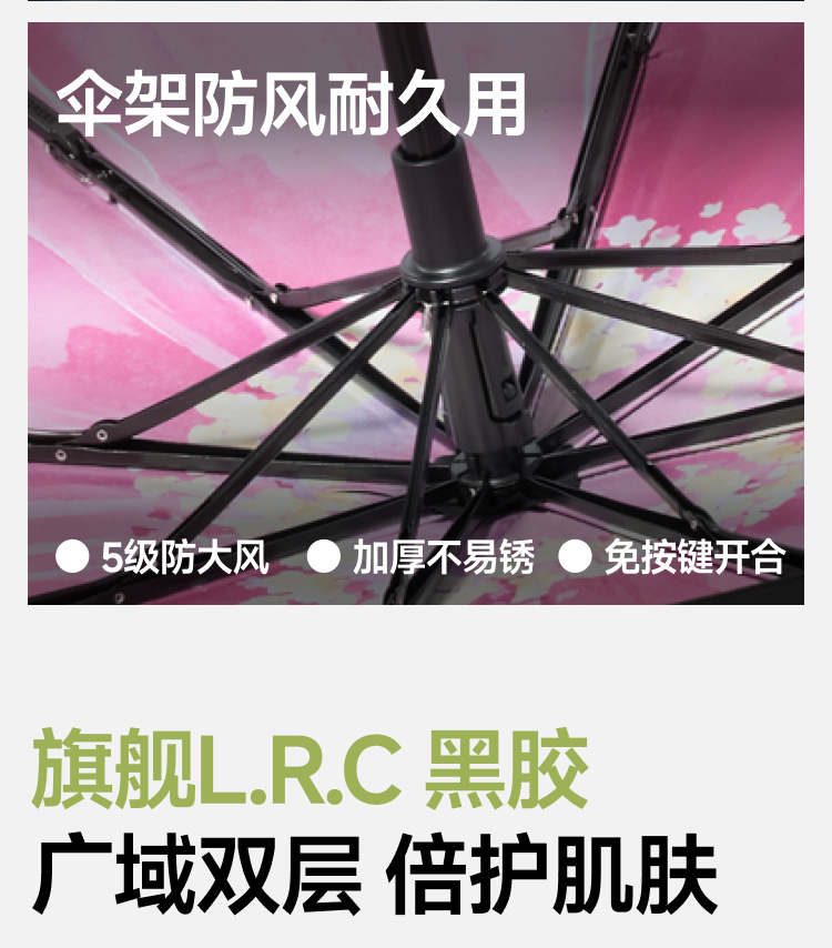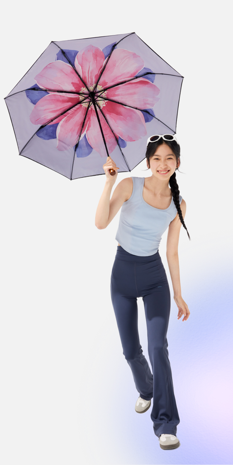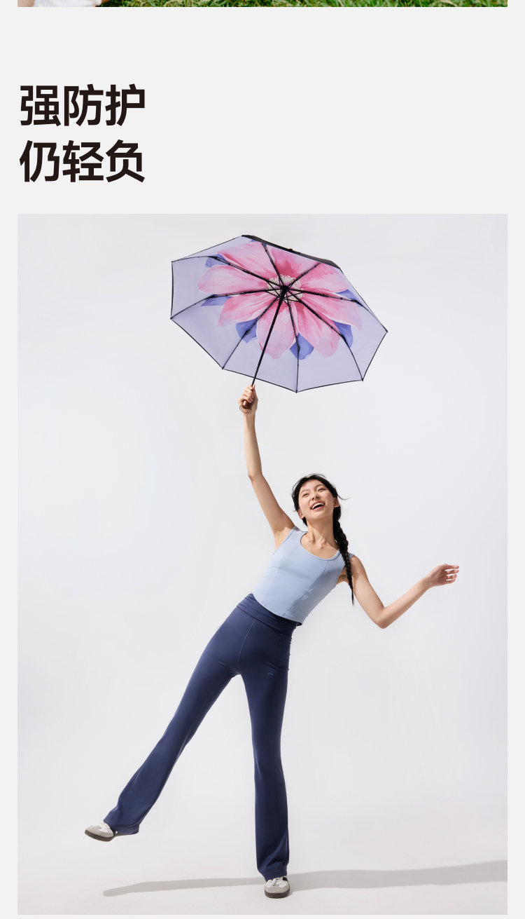 蕉下(beneunder) BM662 三折黑胶防晒伞 复古水彩在黑暗中绽放 绯云(单位:把)