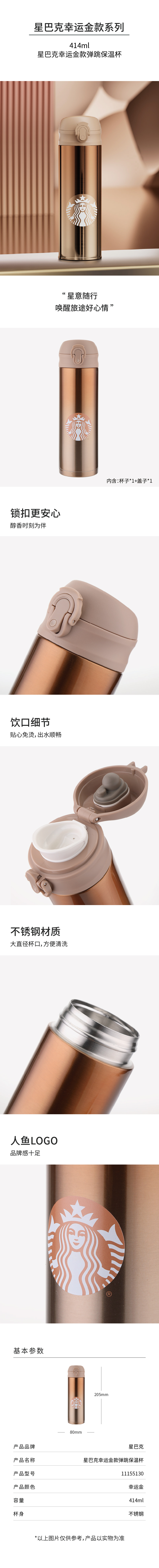 星巴克(Starbucks) 11155130 414ml 弹跳保温杯 金色(单位:个)