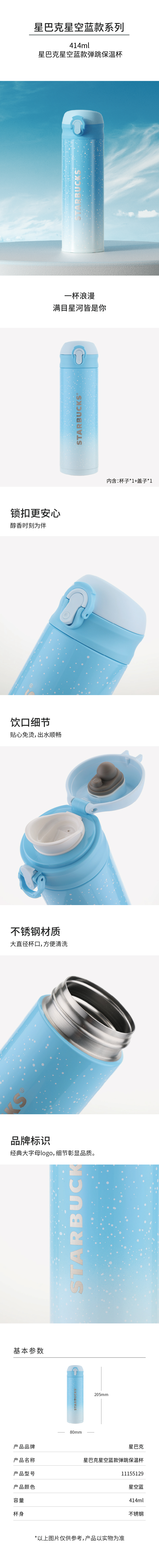 星巴克(Starbucks) 11155129 414ml 弹跳保温杯 星空蓝(单位:个)