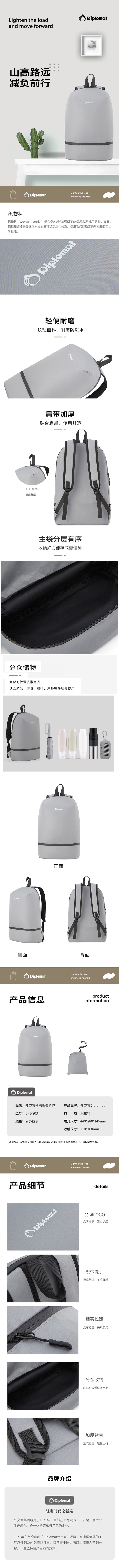 外交官(Diplomat) DFJ-803 展开440x280x145mm 收纳210x160mm 外交官便携折叠背包 灰色 浅灰色(单位:个)