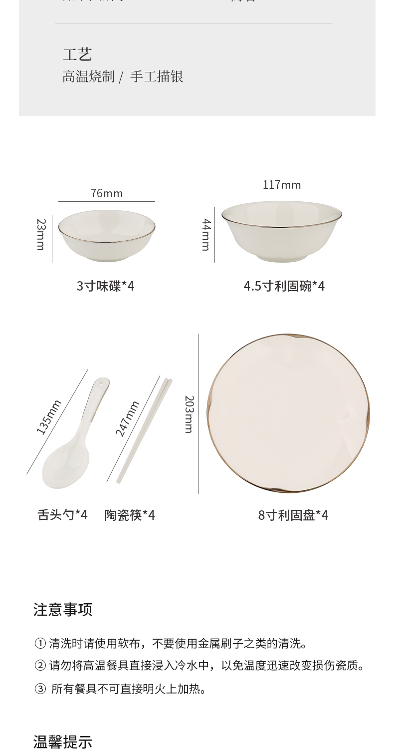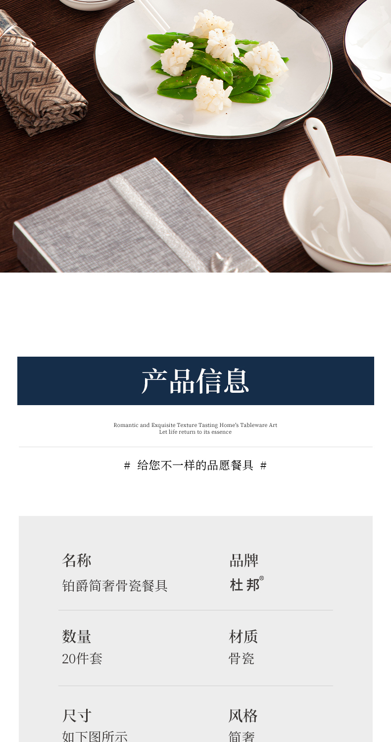 杜邦(DUPONT) PCJ-620 20件套 铂爵简奢骨瓷餐具 白色(单位:套)