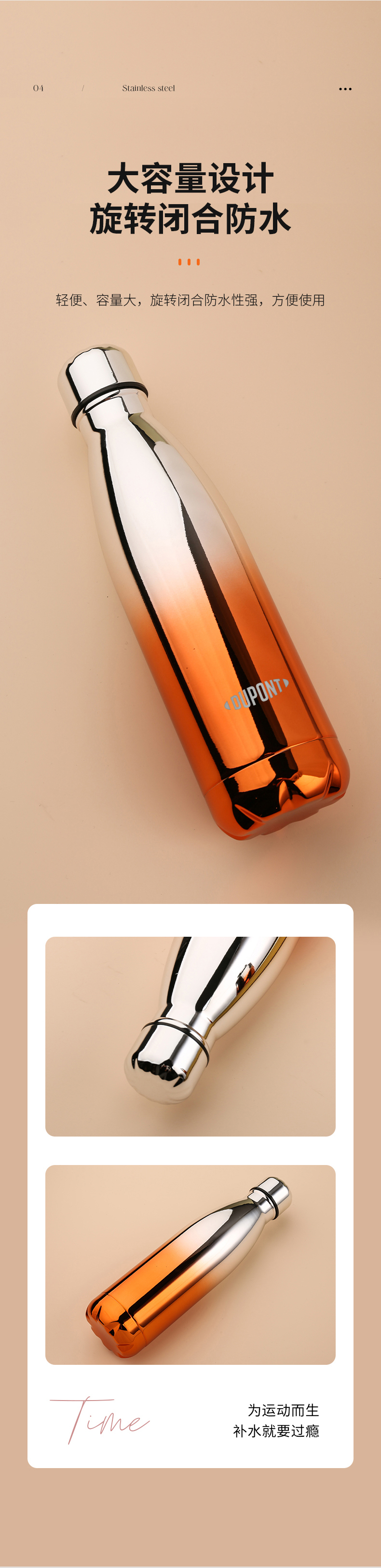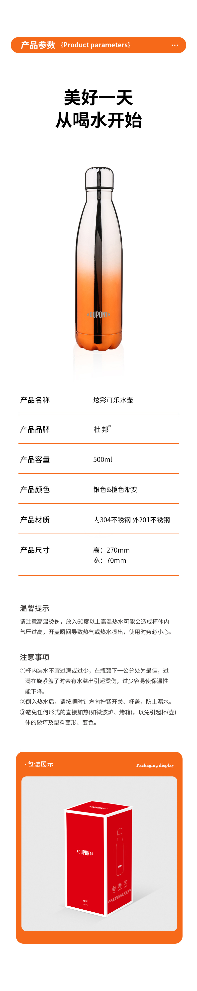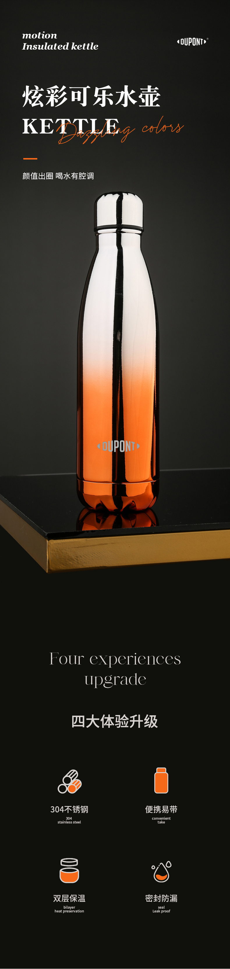 杜邦(DUPONT) 炫彩可乐水壶 PBW-018 500ml 银色&橙色渐变色(单位:只)