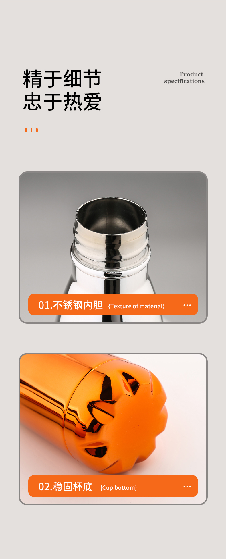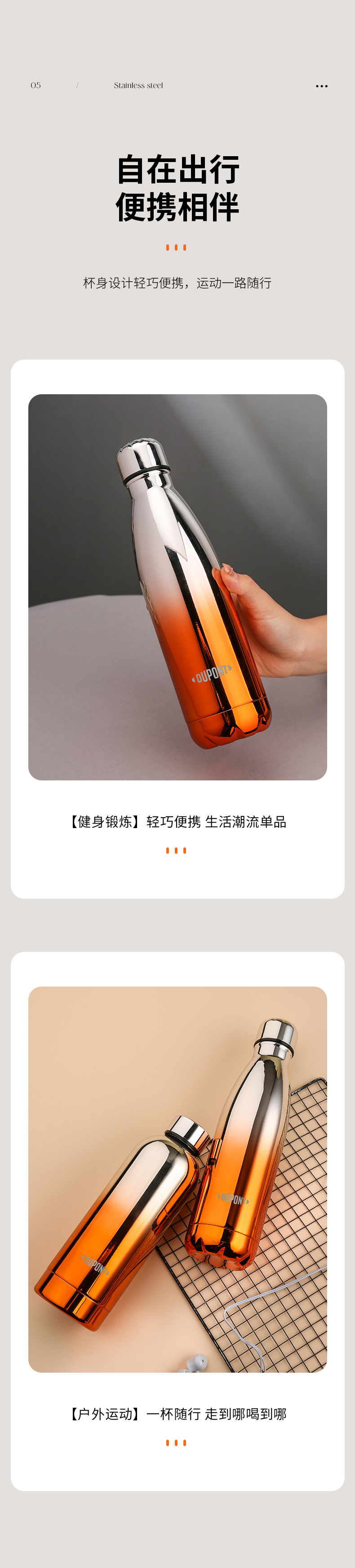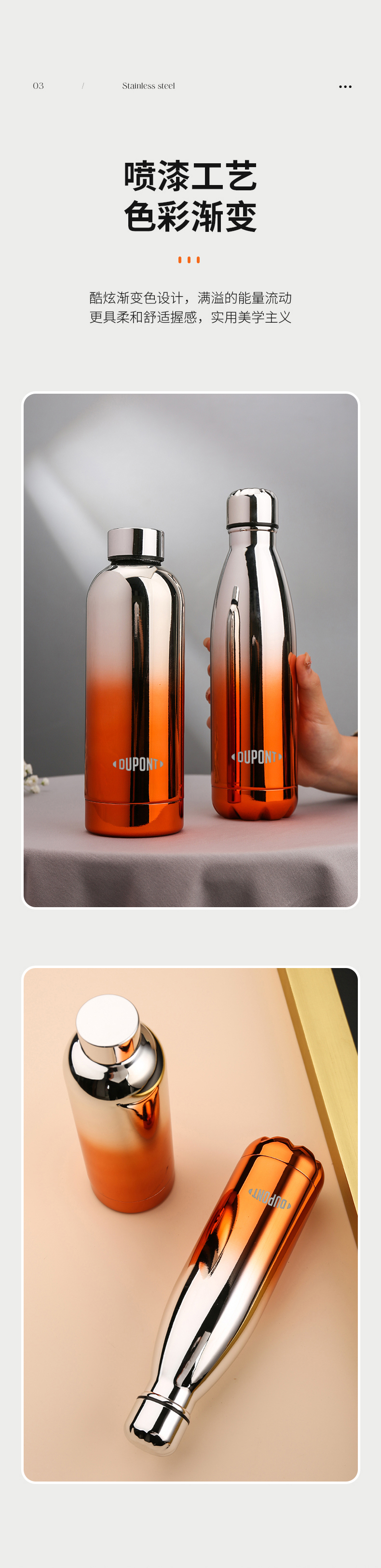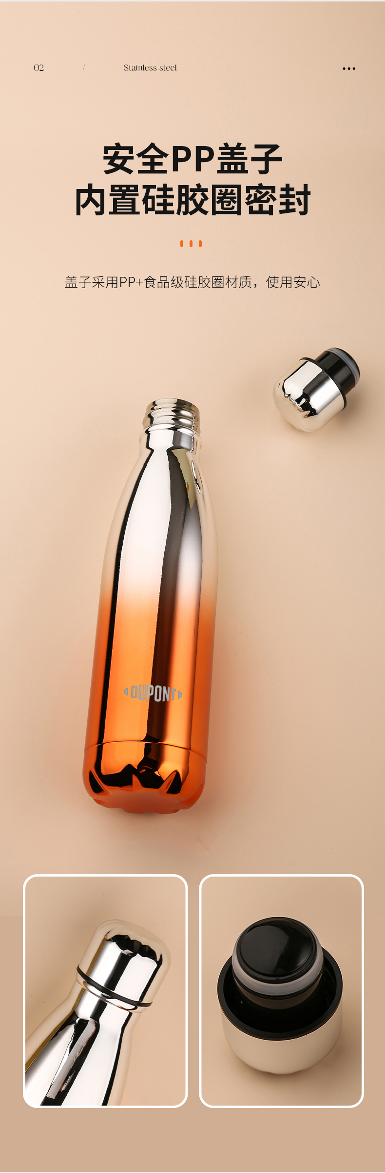 杜邦(DUPONT) 炫彩可乐水壶 PBW-018 500ml 银色&橙色渐变色(单位:只)