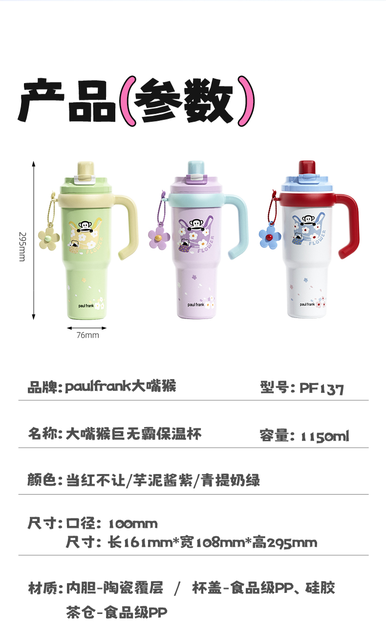 大嘴猴(Paul Frank) PF137 1150ML 保温杯 红色(单位:个)