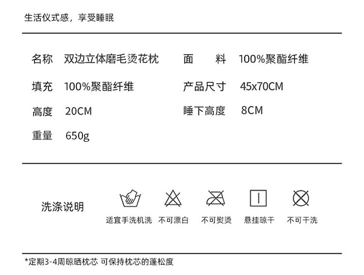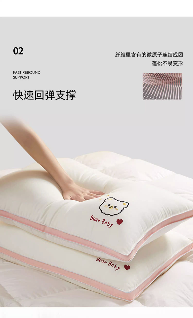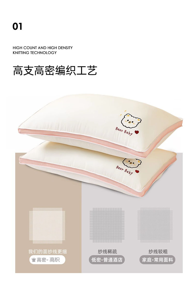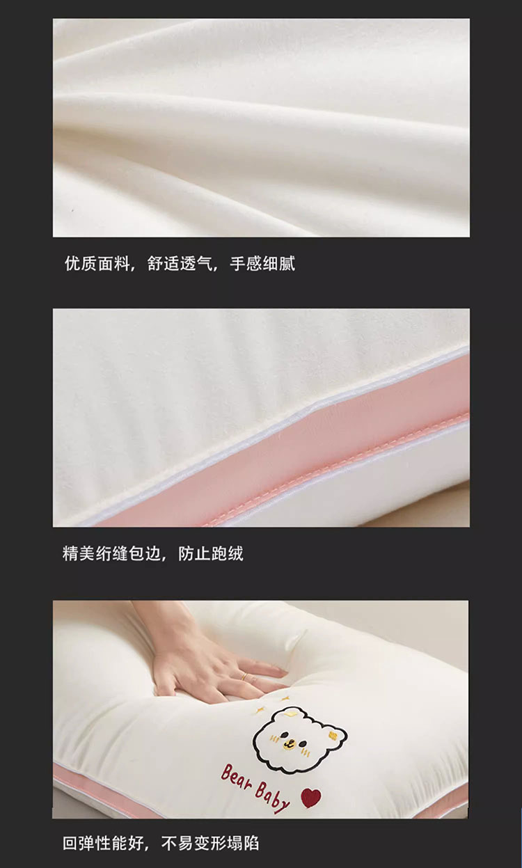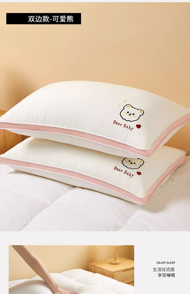 樵纪 可爱熊 45x70cm 双边立体磨毛烫花枕头 白色(单位:只)