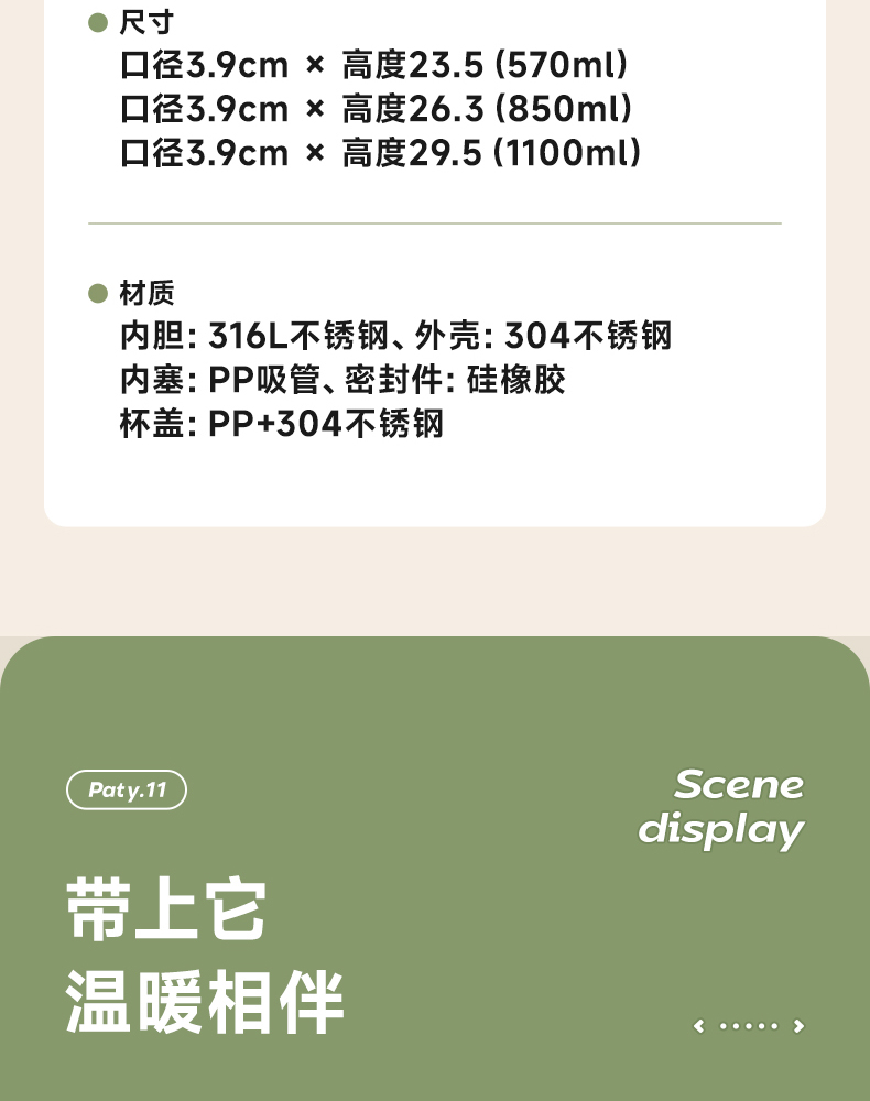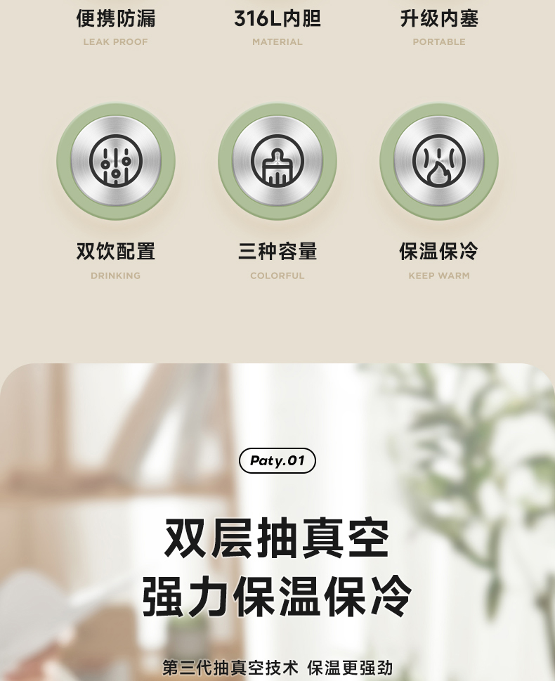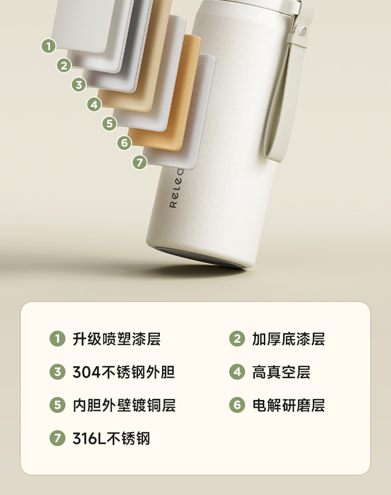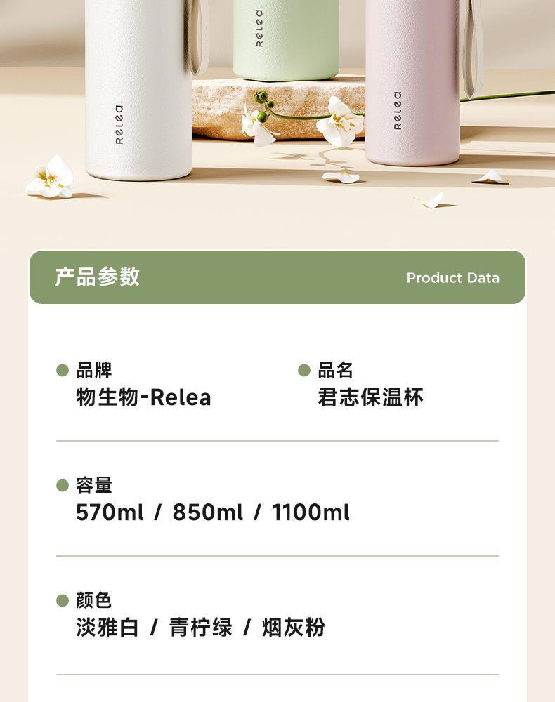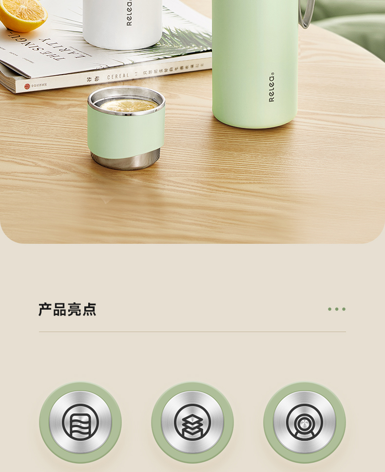 物生物(RELEA) JV012472-1100-VS00 316不锈钢1100ML 君志保温杯 青柠绿(单位:个)