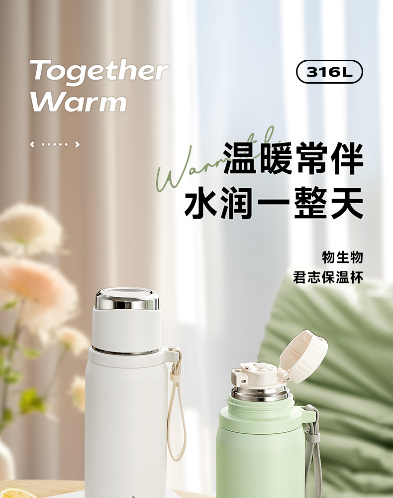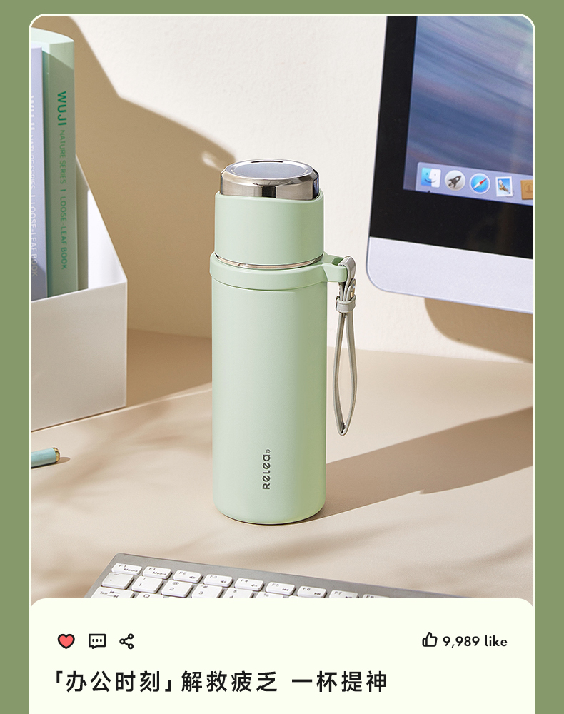 物生物(RELEA) JV012472-0850-VS00 316不锈钢850ML 君志保温杯 青柠绿(单位:个)
