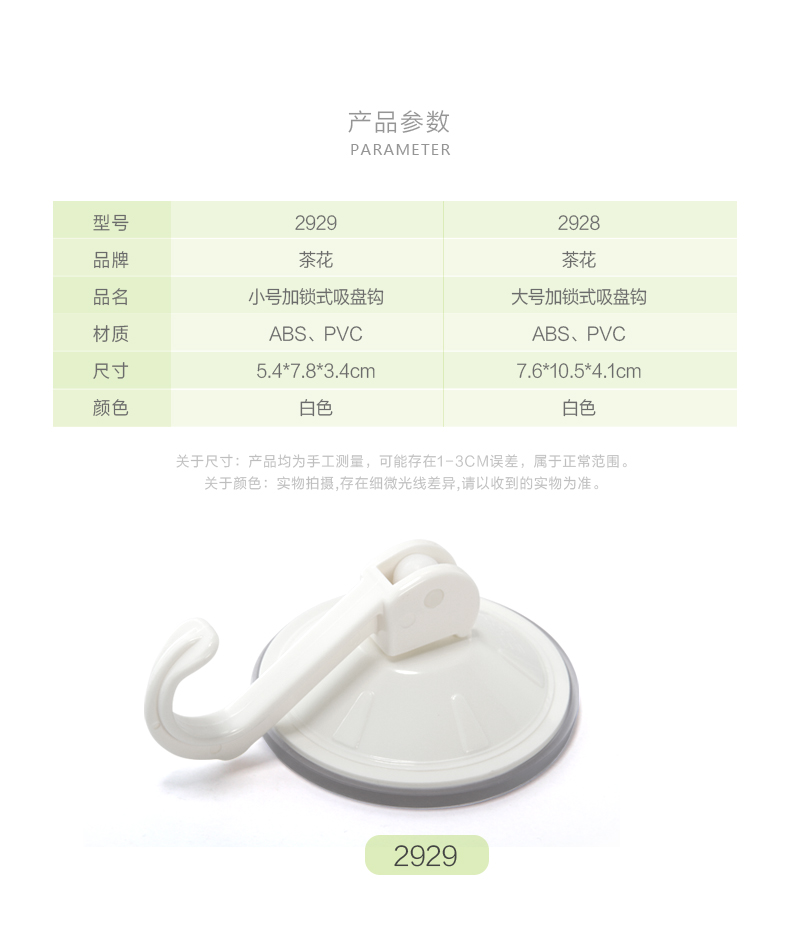 茶花(CHAHUA) 吸盘钩 小号 2个装 白色(单位:包)